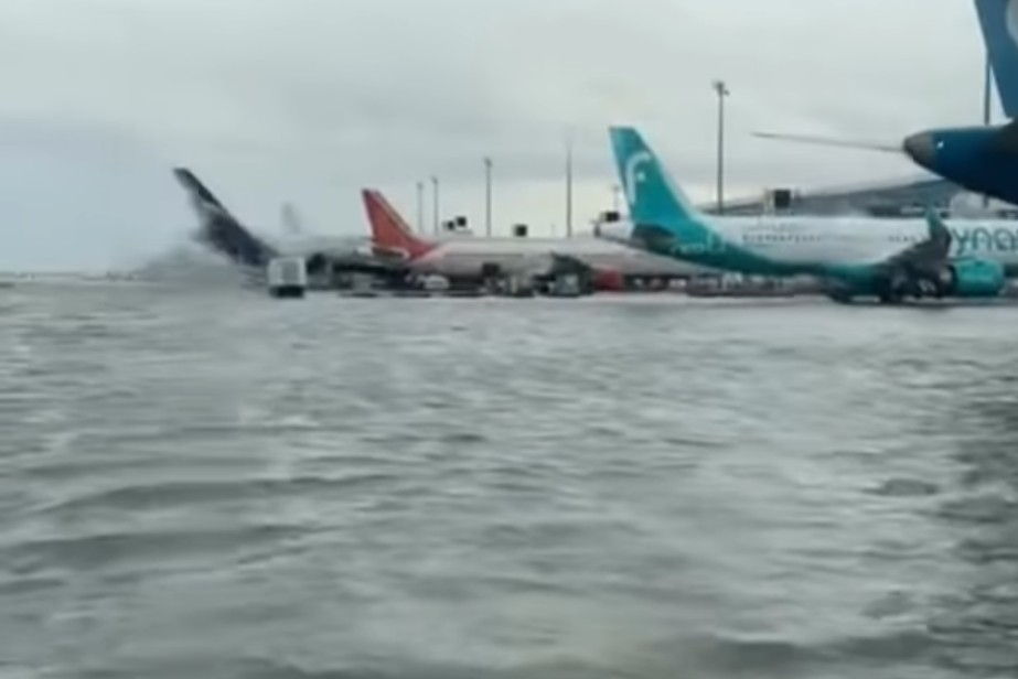 暴雨狂風也擾亂杜拜國際機場的航班,阿聯酋航空宣布,暫停辦理杜拜機場離境登機手續。