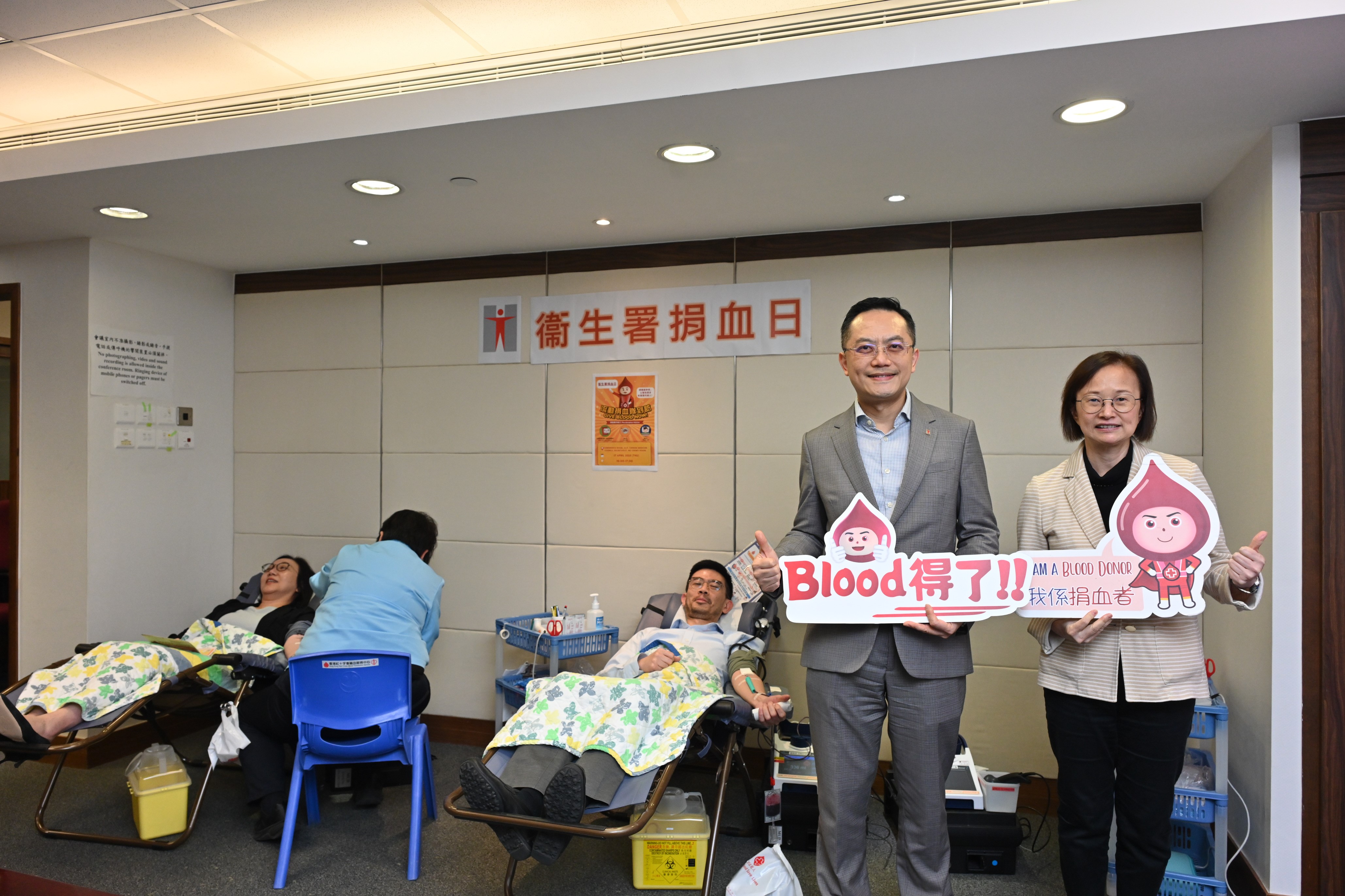 衞生署署長林文健醫生今日(4月17日)率領衞生署同事,支持香港紅十字會輸血服務中心的捐血活動,並呼籲市民趁復活節長假期踴躍捐血,幫助有需要人士。