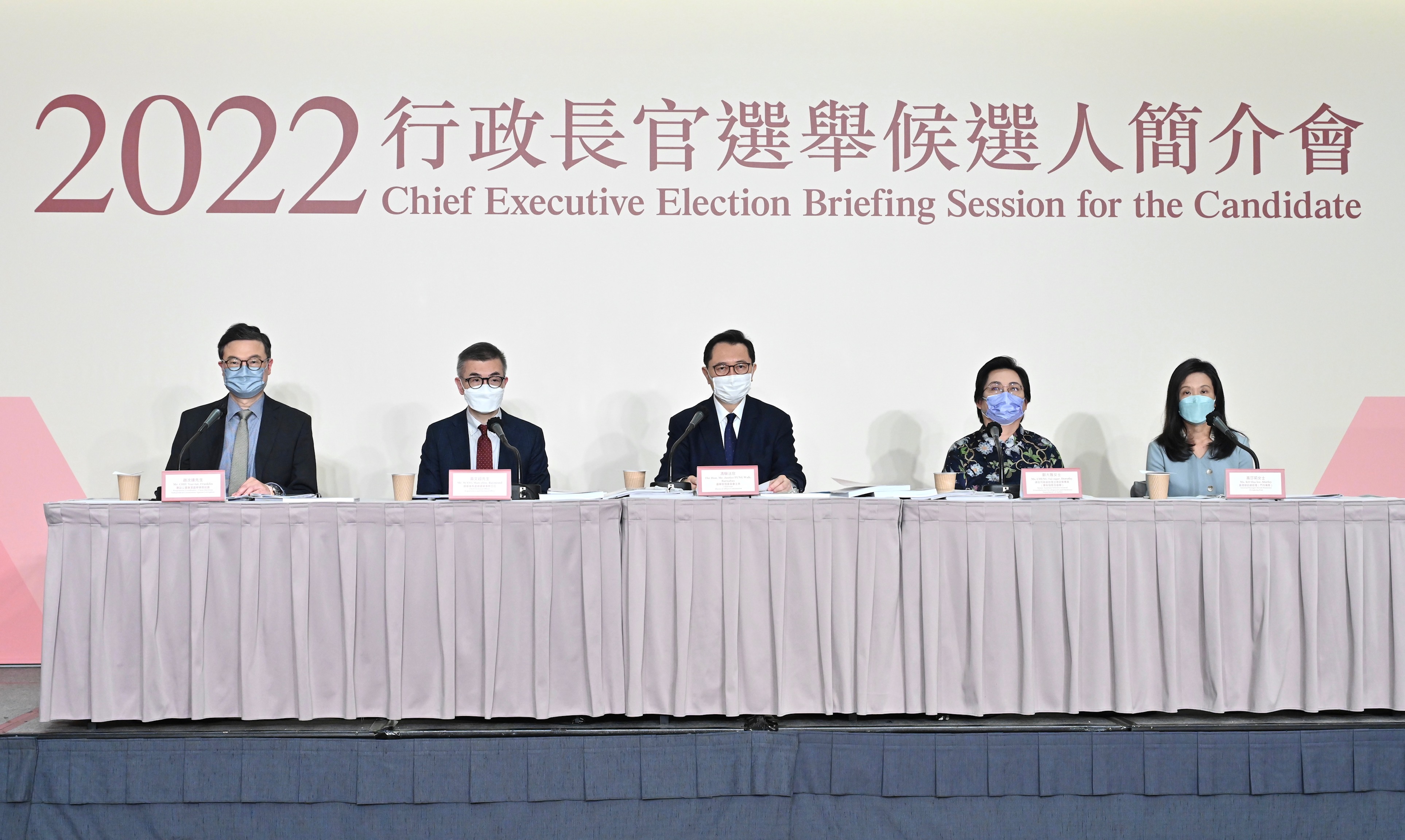 選管會主席馮驊今日(4月22日)在網上,向2022年行政長官選舉候選人及其競選團隊講解進行競選活動時應注意的重要事項。