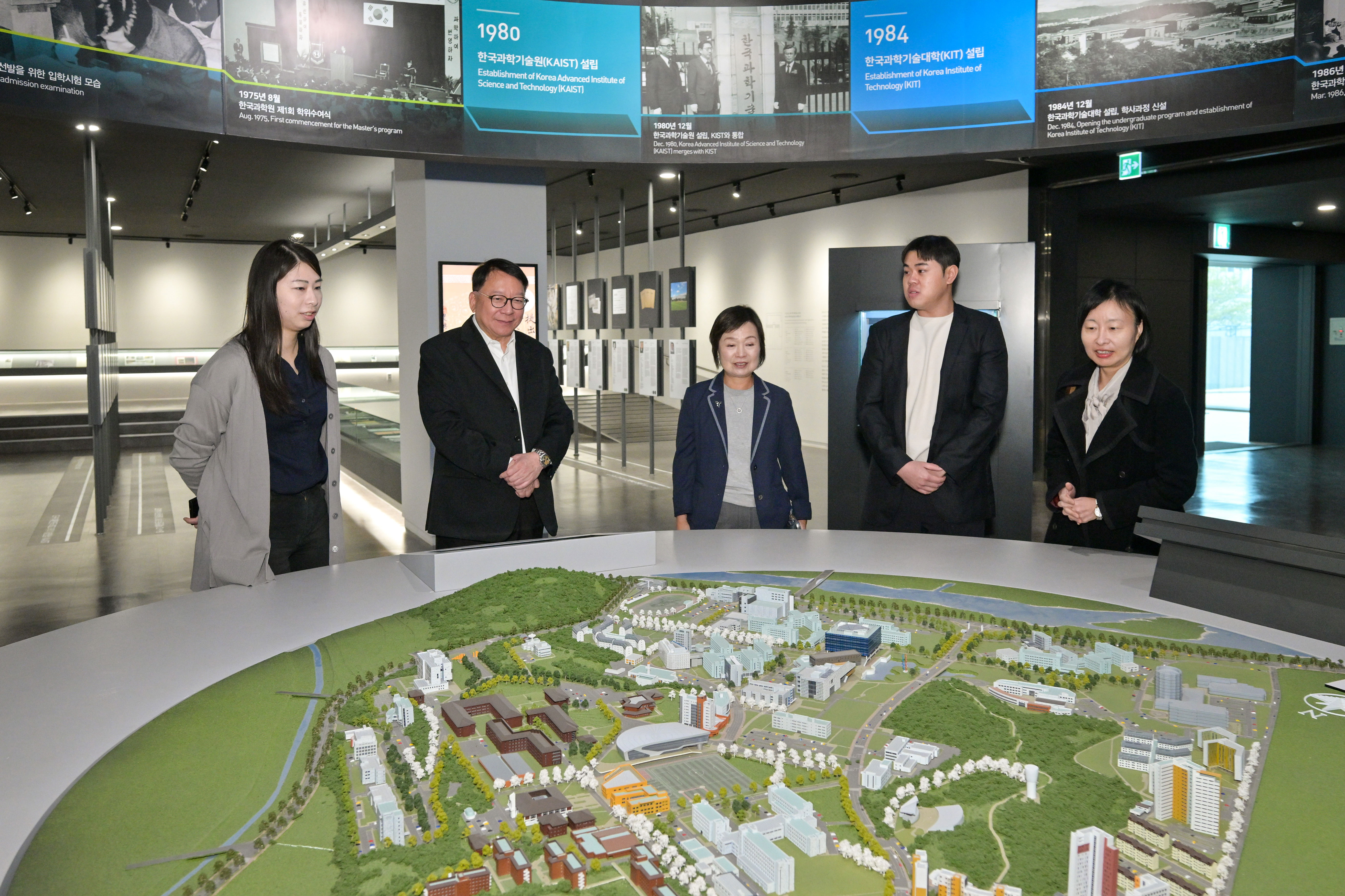 上午,代表團到訪位於大田市的韓國科學技術院參觀其校園設施,與在該大學就讀的香港留學生會面,了解他們的學習情況,以及該院校在推動培養學生創新能力等方面的工作。代表團特別就校園內的學生支援及配套措施、院校引入國際學生的策略以及與業界的聯繫合作跟學生交流,為北都大學城在校園生態與產學布局上累積實務觀察。