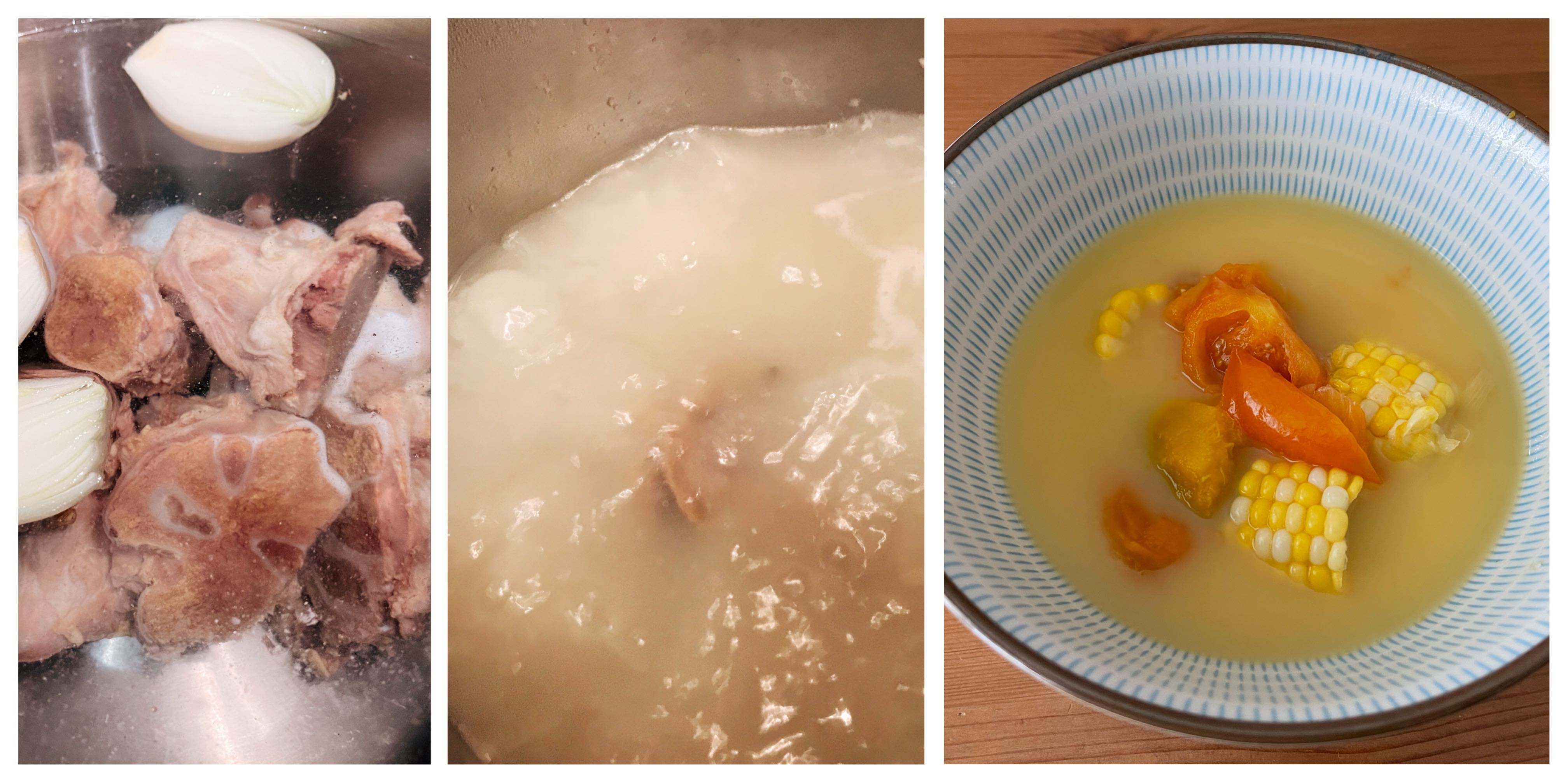 人妻嘉慧煮煮看 簡易豬骨湯 同場加影 - 蕃茄南瓜粟米豬骨湯