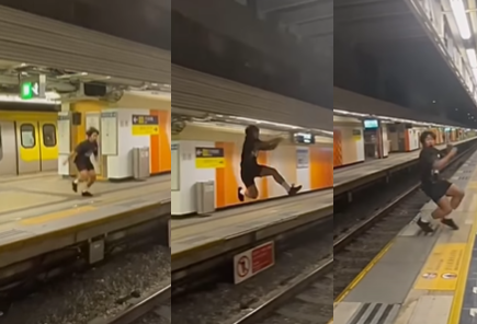 網上近日流傳片段,一名男子在港鐵火炭站助跑後起跳,跳過對面月台。港鐵已報警處理,警方暫列違反港鐵條例跟進。
