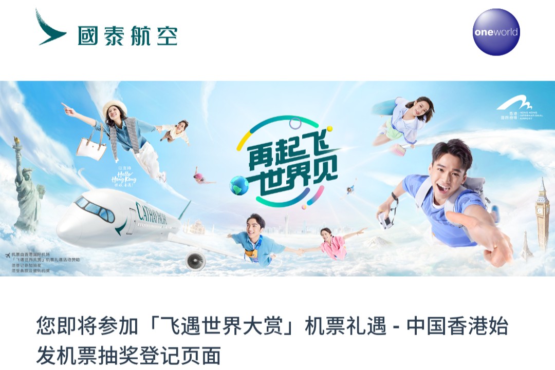 國泰航空由今日上午10時至本月30日深夜23:59期間,推出27,314張香港前往海外26個國家,共46個目的地城市的免費單人經濟艙往返機票抽獎活動。