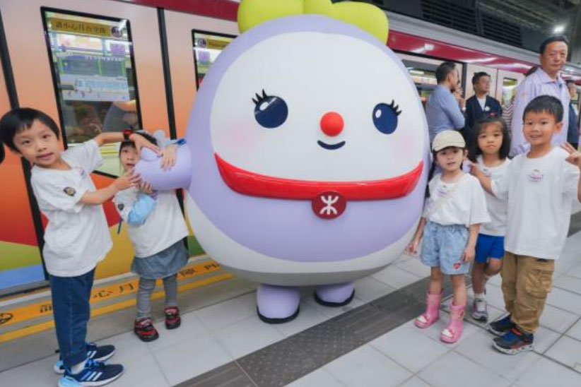 天榮站今日舉行典禮慶祝新月台啟用,港鐵新成員暨輕鐵大使「輕鐵妹妹」更首次與乘客見面,現場合照和大派禮物,以「輕鐵妹妹」為主題的列車亦亮相,將行走各輕鐵路綫。
