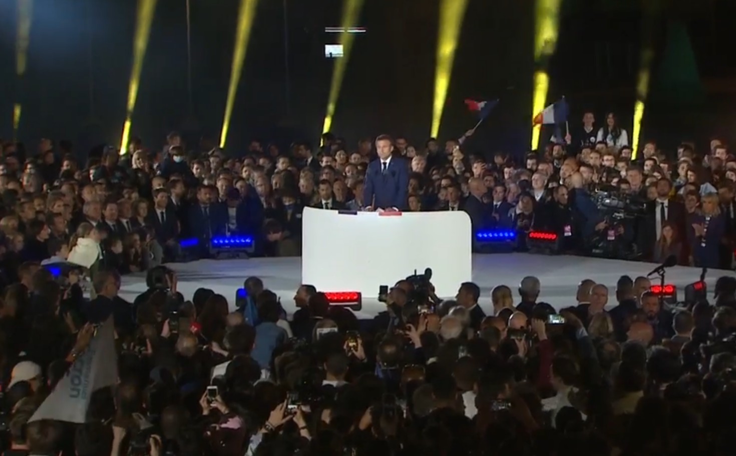 馬克龍晚上出席支持者集會,他除了感謝信任他的選民,也表示知道有選民投給他,只是為了阻擋極右派。