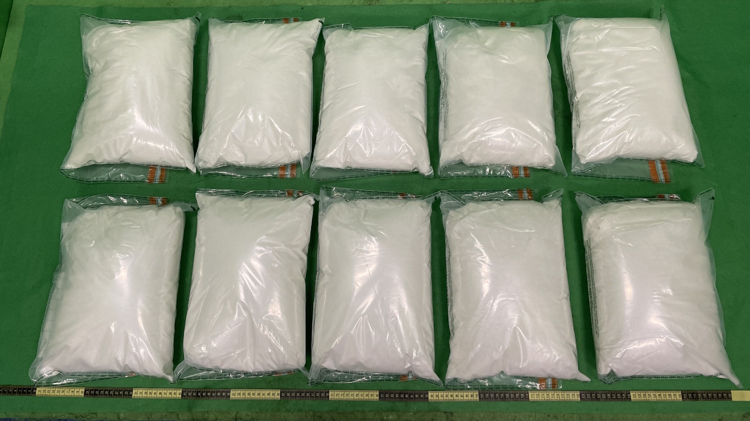 海關當日透過風險評估,在機場查驗一批從波蘭抵港並報稱載有味精的空運貨物。經檢查後,海關人員於20個大尼龍袋中,發現其中兩個藏有懷疑氯胺酮,共重約50公斤。