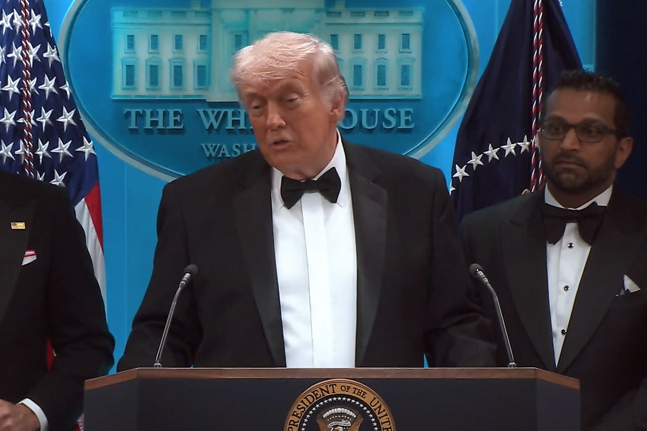 美國總統特朗普周六晚出席白宮記者協會晚宴時,宴會廳外突傳出槍響,槍手當場被捕。