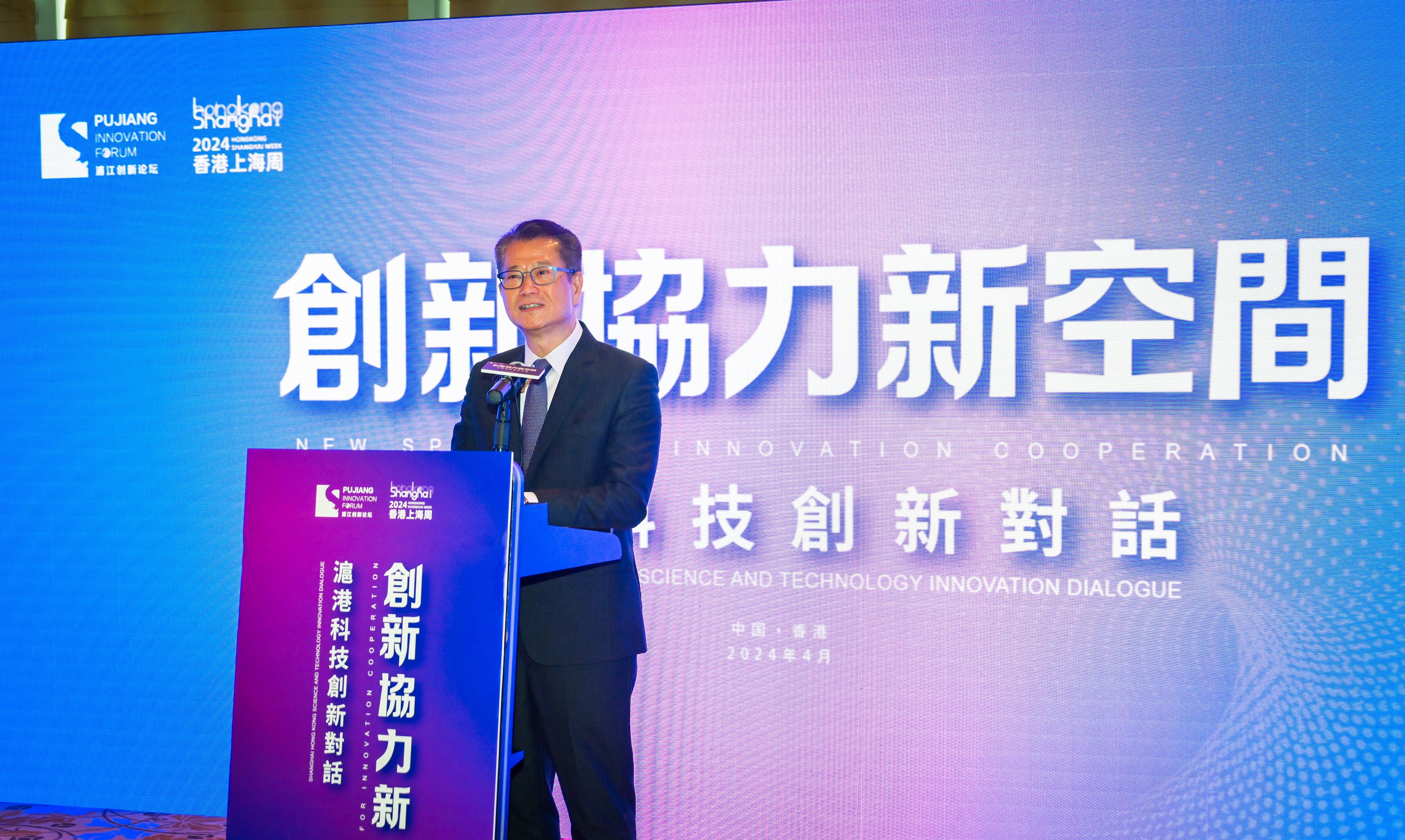 財政司司長陳茂波今日(4月27日)出席「2024浦江創新論壇:創新協力新空間──滬港科技創新對話」,致辭時指科技創新是世界發展的大潮,也是發展新質生產力的主導力量、中國式現代化的關鍵路徑、強國建設的重要抓手。