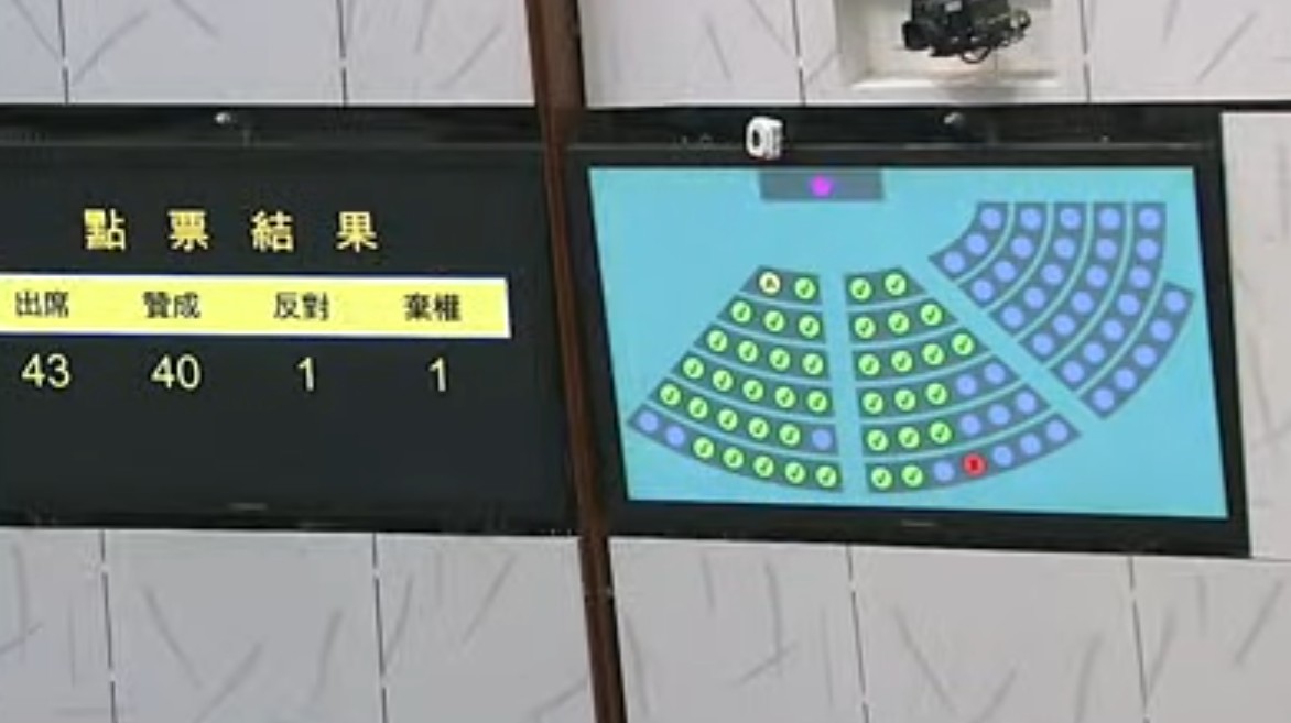 《2021年撥款條例草案》以40票贊成、1票反對、1票棄權下通過,唯一投反對票為熱血公民的鄭松泰。