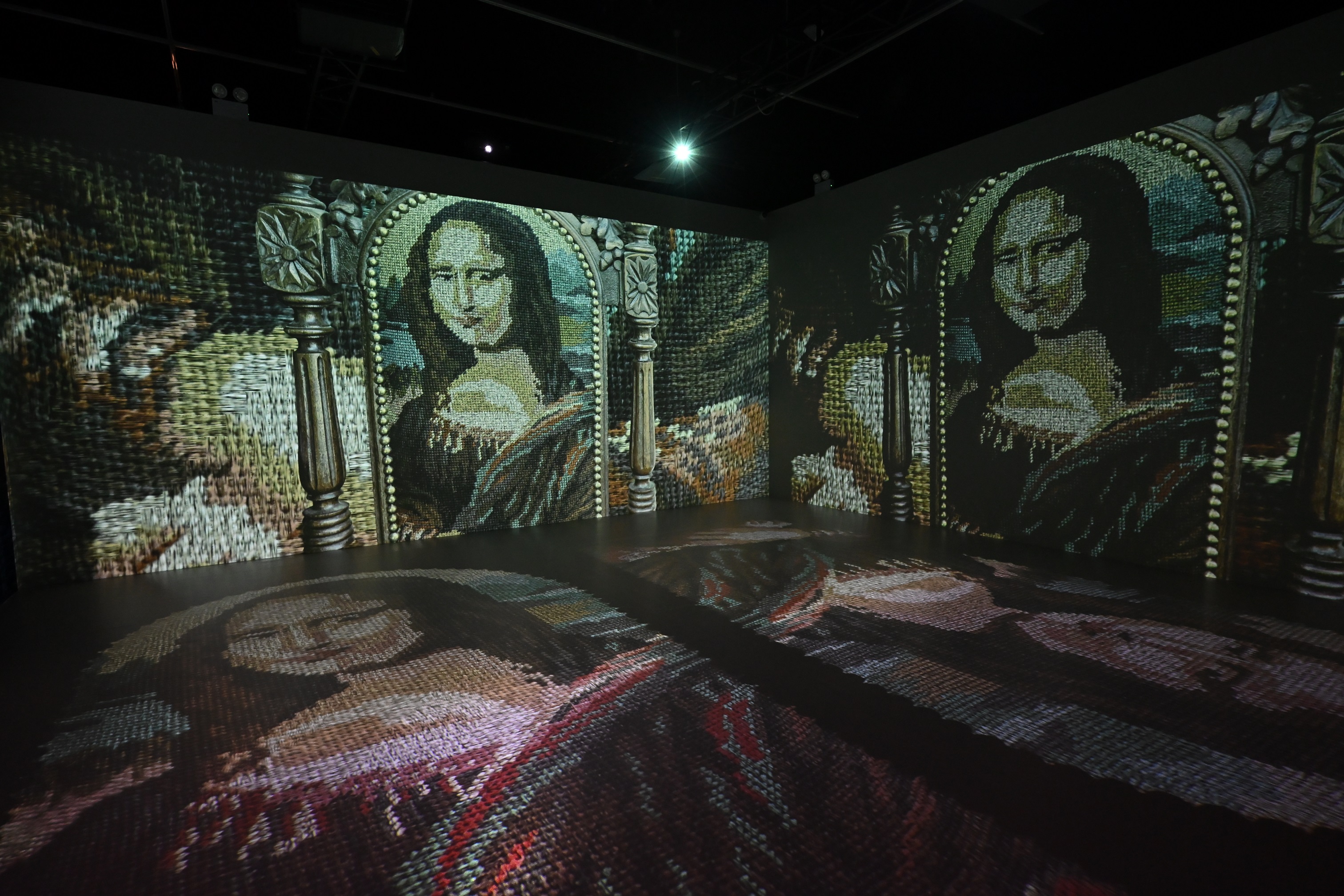 展覽第一部分「邂逅蒙娜麗莎」,以李奧納多.達文西名作《蒙娜麗莎》為主軸。法國羅浮宮博物館和大皇宮沉浸式展覽館特別為香港製作多媒體沉浸式體驗,將這幅肖像畫跨越五百多年的非凡經歷編寫成六個章節,由蒙娜麗莎以「獨白」形式,娓娓道來那抹神秘微笑背後引人入勝的故事。