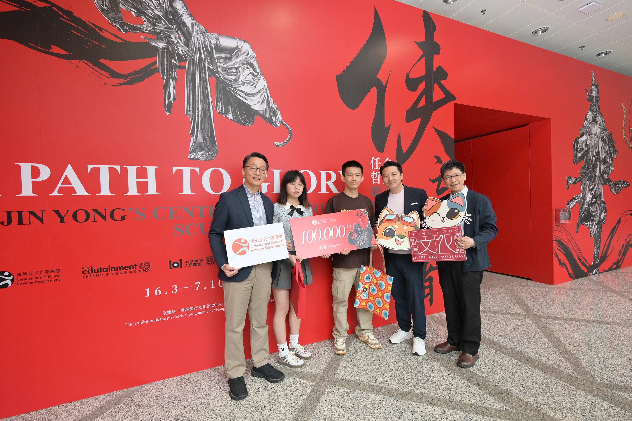 金庸創作的小說及其筆下人物,是香港乃至全球華人的集體回憶。是次展覽獲得查良鏞博士家人及明河社全力支持,是全球首個獲正式授權的金庸經典武俠人物雕塑藝術展。展覽自3月16日開展以來,深受市民及旅客歡迎,第10萬名參觀者是來自福建的郭先生和陳小姐,二人曾多次到訪香港文化博物館,去年也曾參觀博物館內的張國榮紀念展和李小龍展覽,今年五一黃金周假期專程來港參觀「俠之大者」展覽。