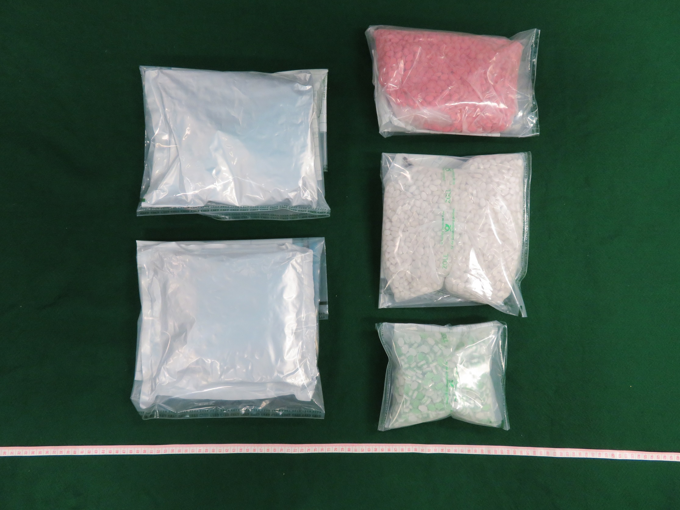 海關人員3月16日檢查一件由德國到港的空運包裹,發現內藏約2公斤懷疑氯胺酮,收件地址為尖沙咀一商業單位。其後於3月22日,於檢查同樣由德國到港的空運包裹,發現內藏約7000粒懷疑搖頭丸,收件地址為旺角一商業單位。