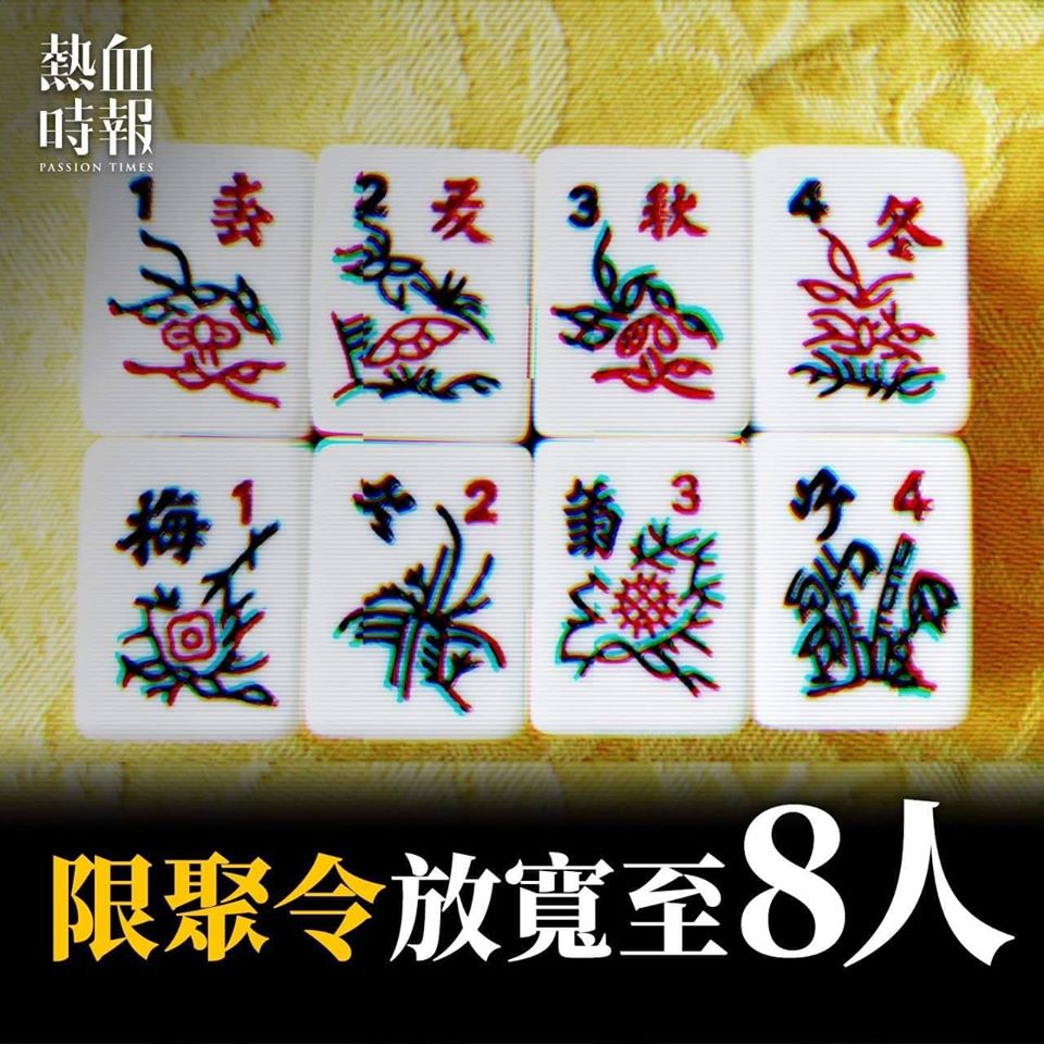 特首林鄭月娥今午(5月5日)宣布,兩條在5月7日午夜到期的規例,亦即是規管飲食業和其他業務及處所的第599F章和禁止群組聚集的第599G章,將須要延長14日至5月21日;與此同時,會放寬部分管制措施,餐飲處所的同枱人數上限會由現時的4人放寬至8人。其他的規定則維持不變,基本上除了進食時是要戴口罩、要提供搓手液,以及桌子與桌子之間有1.5米的距離或者有適當的間隔、量體溫,諸如此類。
