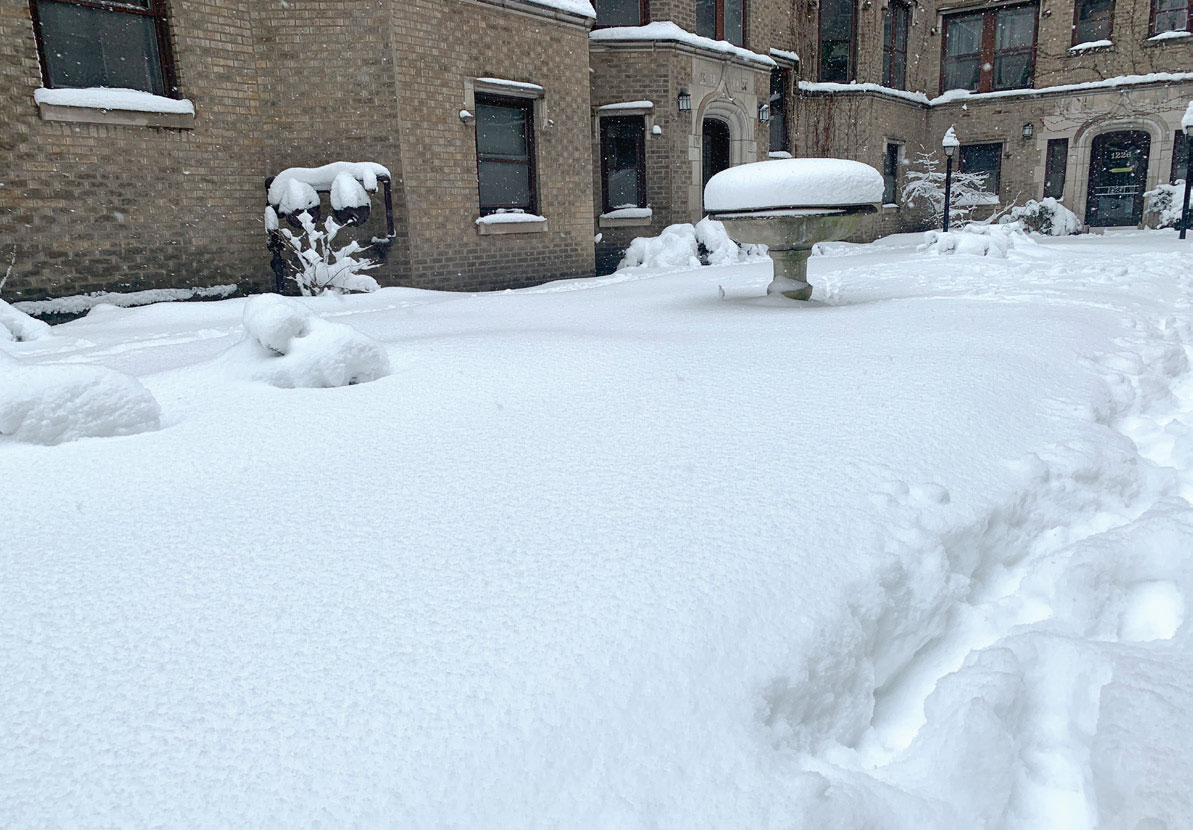 在芝加哥度過第二個冬天,今年的雪比上年更多,積雪足以蓋過膝蓋。前園的小型噴水池,更好像被放上一個雪造的布甸一樣。