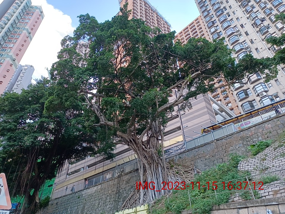 有關的古樹名木是一棵高17米的細葉榕,於《古樹名木冊》內的編號為HYD CW/1,部分樹冠橫跨醫院道。該古樹在2019年初證實感染褐根病,路政署隨即按發展局樹木管理辦事處的指引,加強護養該古樹名木及定期檢查其健康及結構狀況,並採取一系列相應措施,包括每三個月進行一次樹木風險評估、定期修剪樹枝以減少樹冠的重量和整體荷載、噴灑殺真菌劑,採用土壤改良劑,以期改善該樹的健康情況,並定期測量樹木移動幅度。此外,署方亦在2021年開始以大型混凝土塊及拉攬支撐和穩固該樹。
