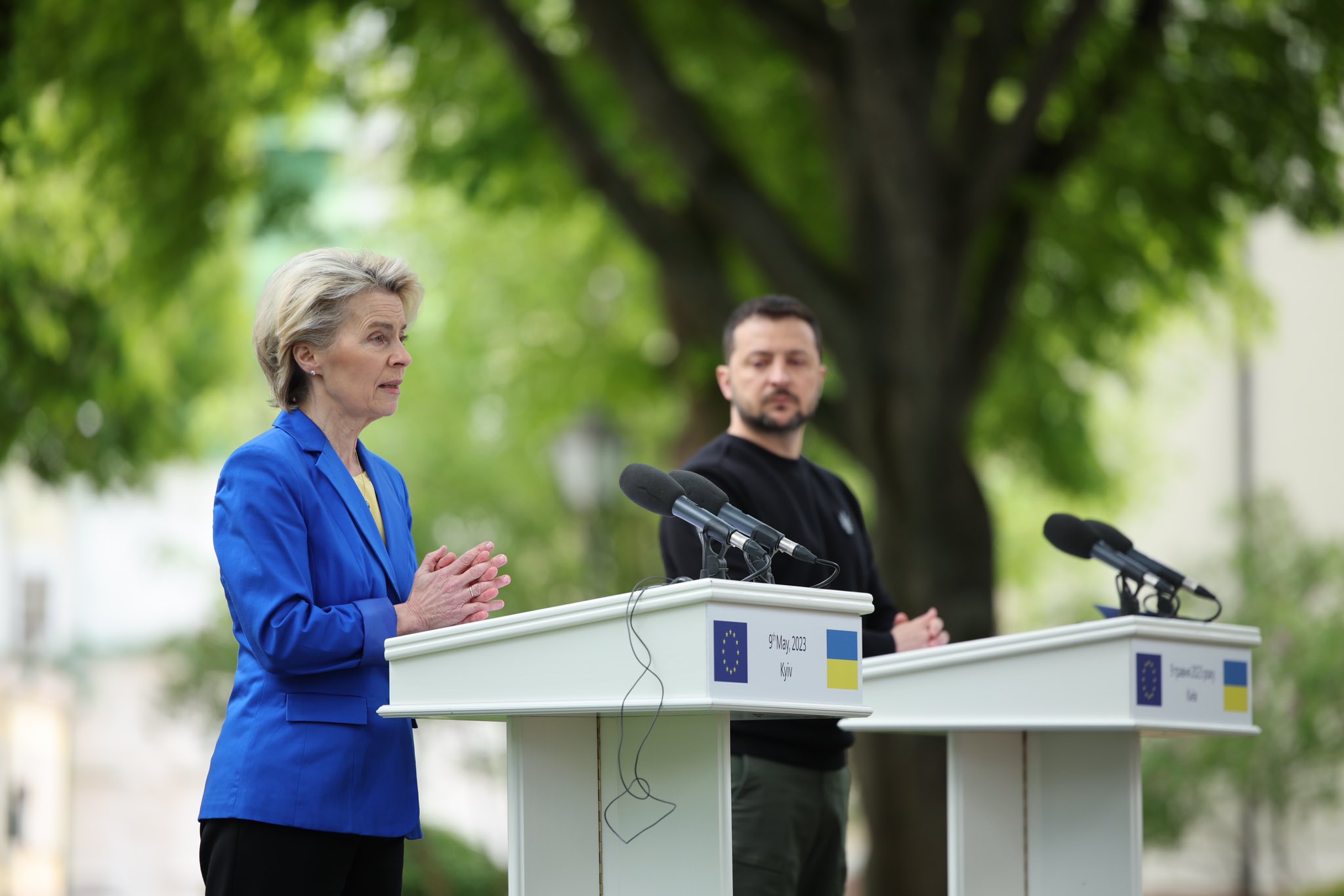 馮德萊恩表示,極為樂見澤連斯基決定把5月9日定為「歐洲日」,又指烏克蘭屬於歐洲大家庭。