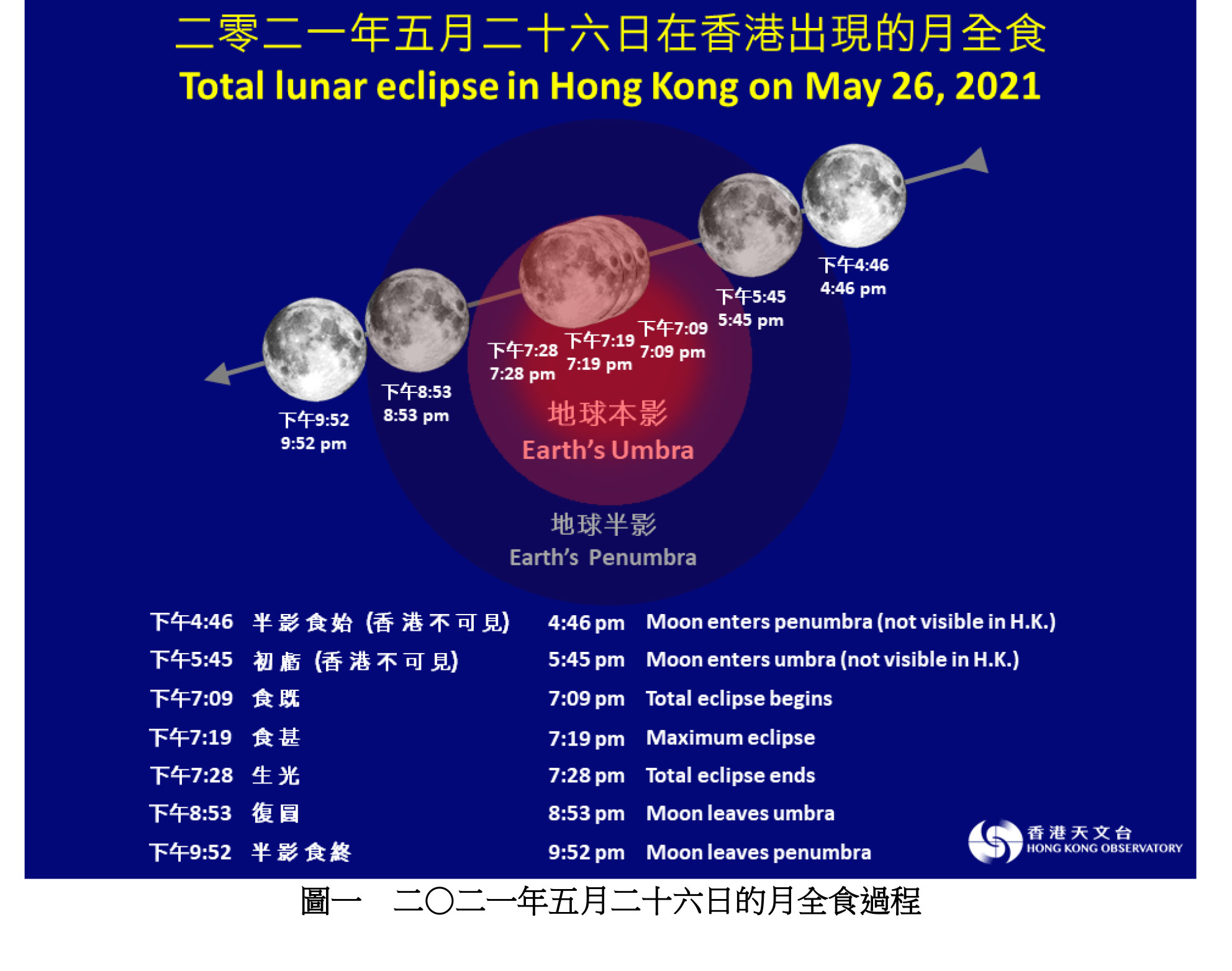 天文台表示,市民在本月26日有機會觀賞到月全食,當天亦會出現全年最大的滿月,即「超級滿月」,屆時月亮的直徑會較平日的滿月大約7%。