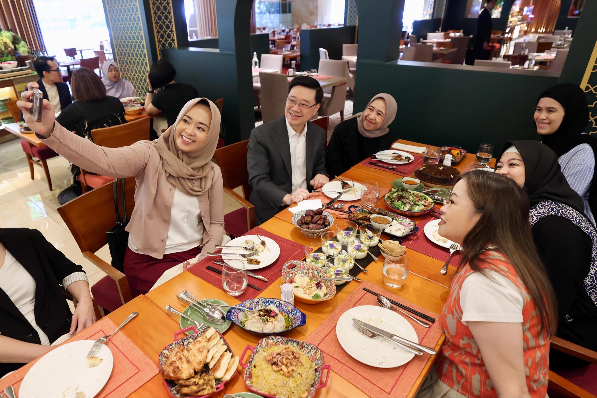 李家超指見到廚師為客人炮製豐盛的清真美食,亦遇到幾位穆斯林旅客並和她們交流,很高興聽到她們對酒店配套感到滿意,並認為完善優質的服務吸引他們日後多帶朋友過來度假。