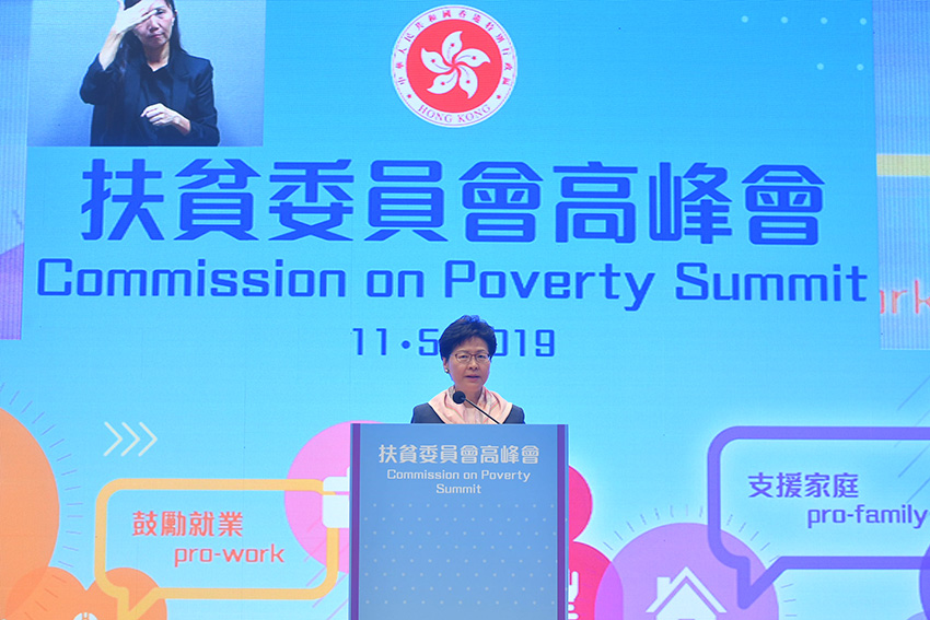 行政長官林鄭月娥今日(5月11日)出席2019年扶貧委員會高峰會,致辭時指按「相對貧窮」概念制訂的貧窮線,有一定限制。