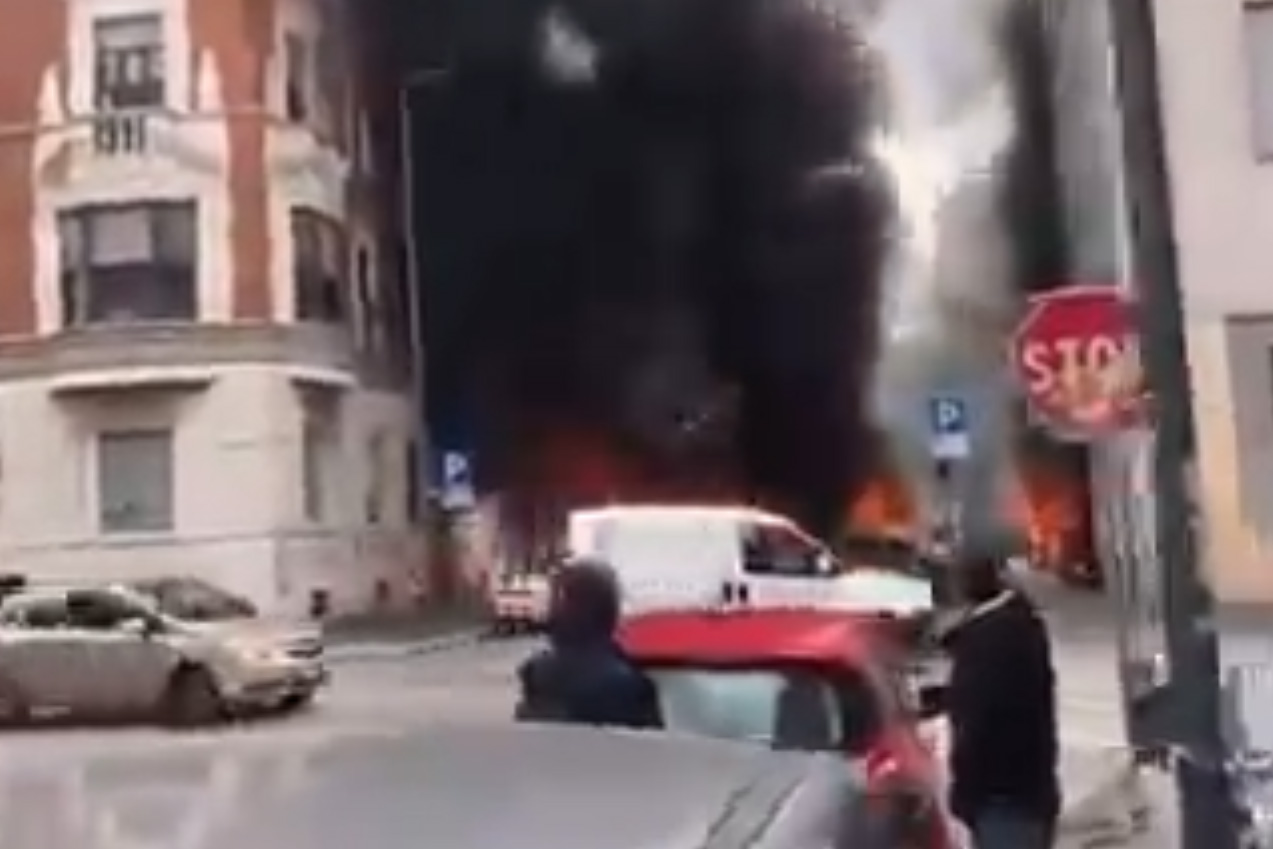 意大利的米蘭市中心周四(5月11日)發生爆炸,多輛汽車陷入火海。