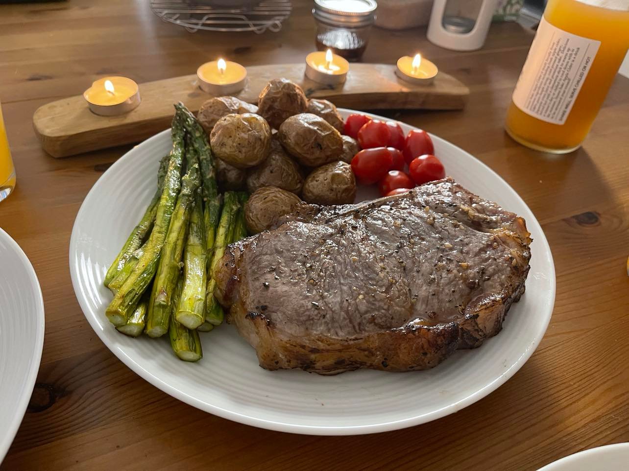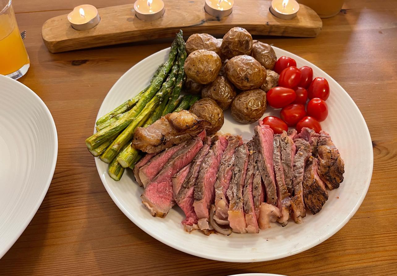 人妻嘉慧煮煮看 「氣炸鍋晚餐」牛扒露筍配薯仔