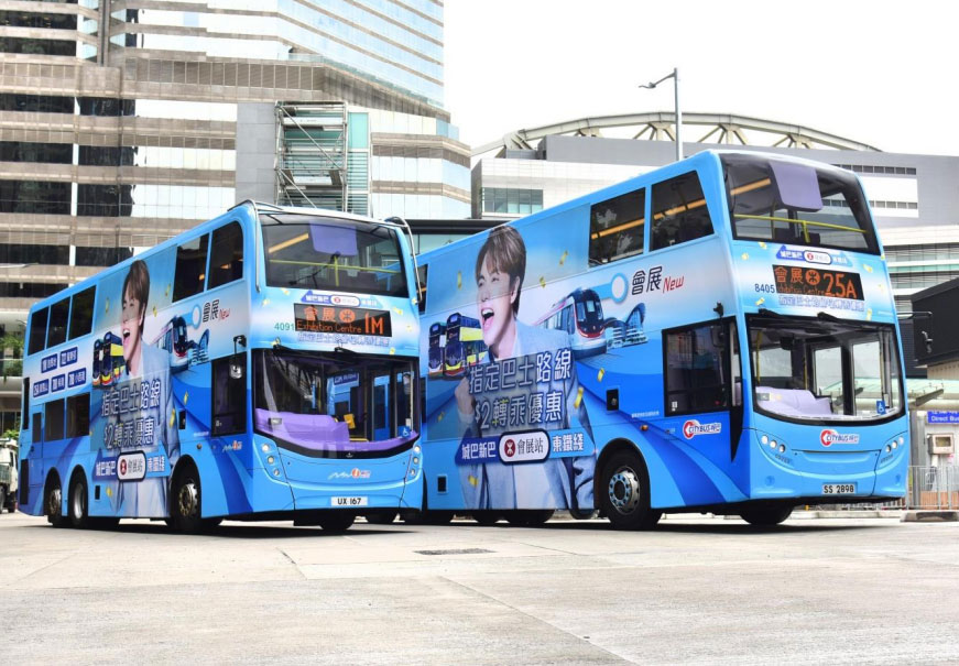 30輛披上相關廣告的宣傳巴士,包括兩輛全車身廣告的主題巴士,將於明日起在港島行走5條指定巴士路線,並提供為期6個月的巴士鐵路轉乘優惠。同時,城巴新巴及港鐵,已於新落成的港鐵站及公共運輸交匯處,設立清晰的指示牌,方便乘客轉乘。
