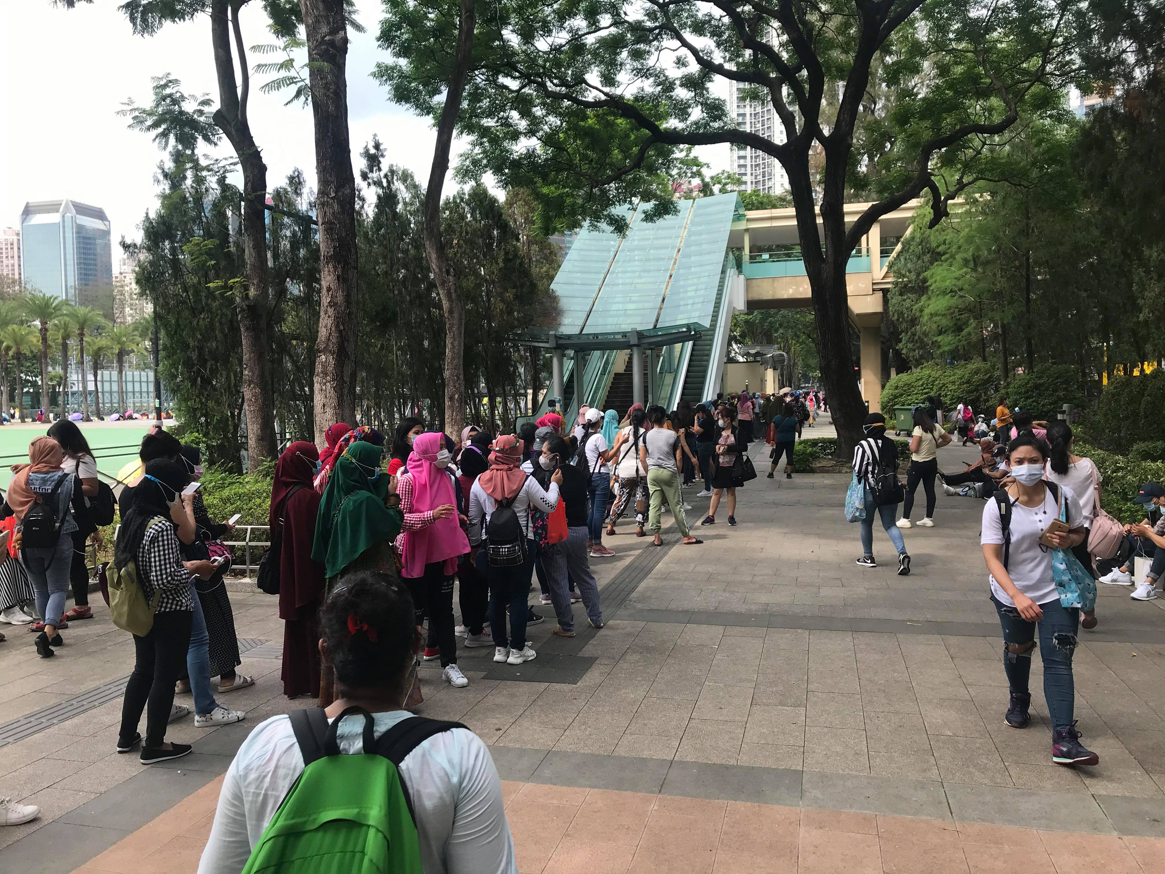勞工處今日(5月16日)在外籍家庭傭工)經常聚集的地方進行巡查,以查察外傭是否已遵從早前的強制檢測公告接受檢測。