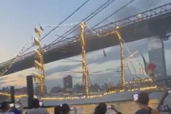 In an absolutely stunning modern metaphor a ship blaring Mexican music and flying a massive Mexican flag just got destroyed by the Brooklyn bridge.