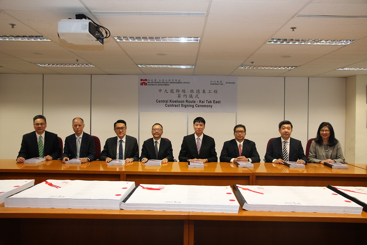 路政署今日(5月21日)與愛銘──保華聯營簽署中九龍幹線項目啟德東工程合約,主要工程包括於啟德建造一段約700米長的中九龍幹線主線、啟德交匯處包括橋樑、隧道及相關地面連接路連接中九龍幹線與現有道路網,以及其他相關工程,合約價值約為19.74億元。