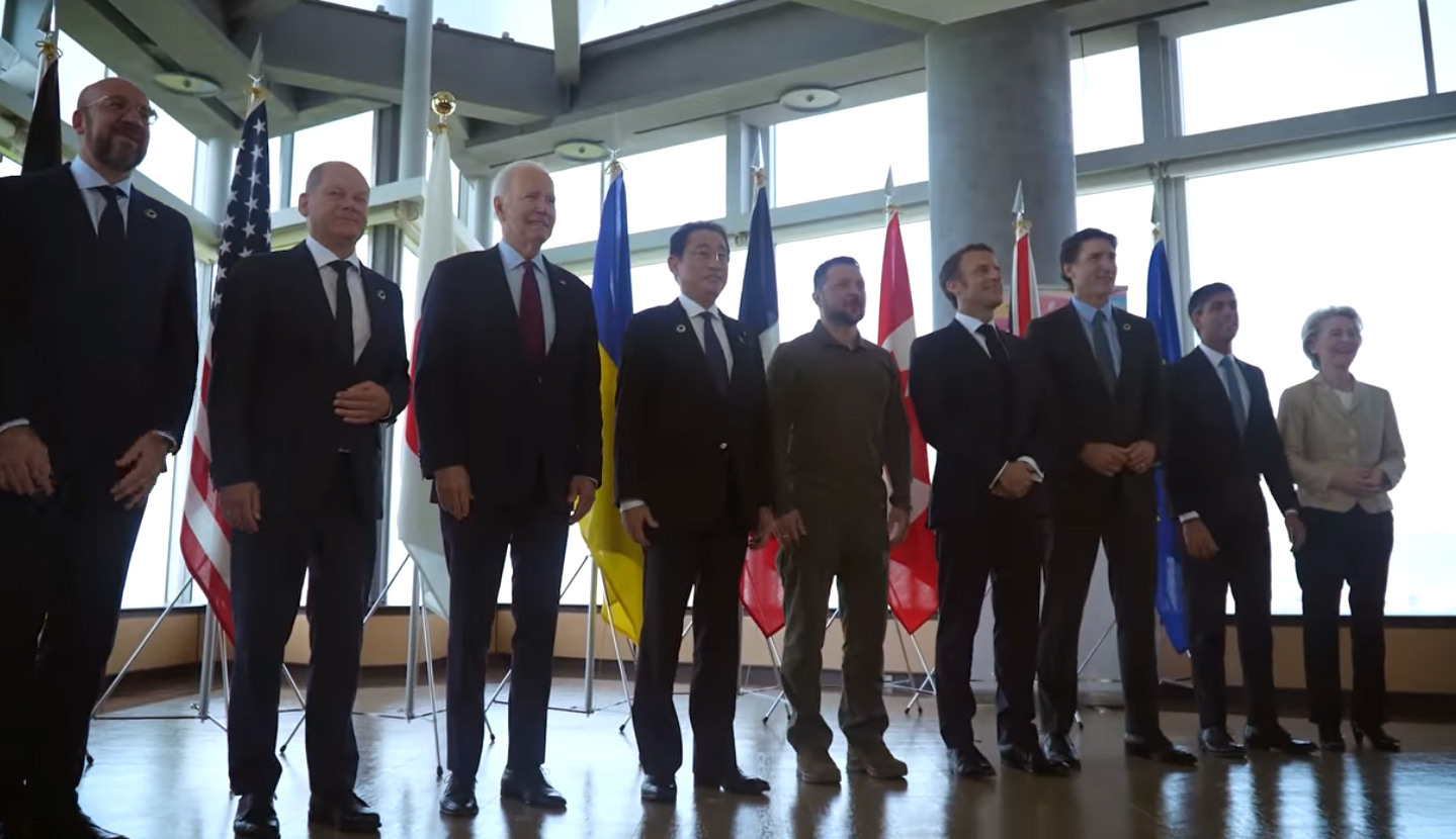 烏克蘭總統澤連斯基昨日乘法國政府專機抵達日本廣島機場,今天(5月21日)上午在出席G7峰會議程前先跟G7領袖合照,並與日本首相岸田文雄短暫交談。
