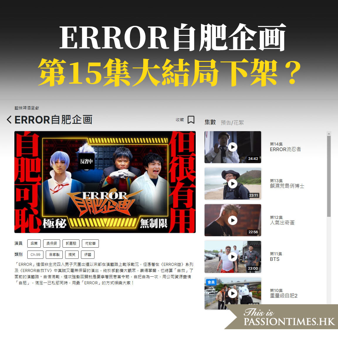 首頁生活資訊娛樂 《ERROR自肥企画》第15集大結局下架? 作者:熱血編輯部 (陳五) 05-22-2021 Like Facebook Twitter 更多 Like2 分享0 留言0 近日成為網絡熱話的ViuTV綜藝節目《ERROR自肥企画》,於昨晚播出第15集大結局,隨後放上官網重溫。然而,今日(5月22日)晚上8時許,有觀眾發現第15集於官網重溫中突然消失,原因未明。更新:第15集於晚上近11時重新上架。