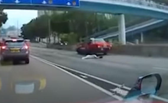 網上片段所見,該名女子疑貪方便棄用行人天橋,強行橫越渡船街,結果遭剛從西九龍走廊落橋之的士撞倒。