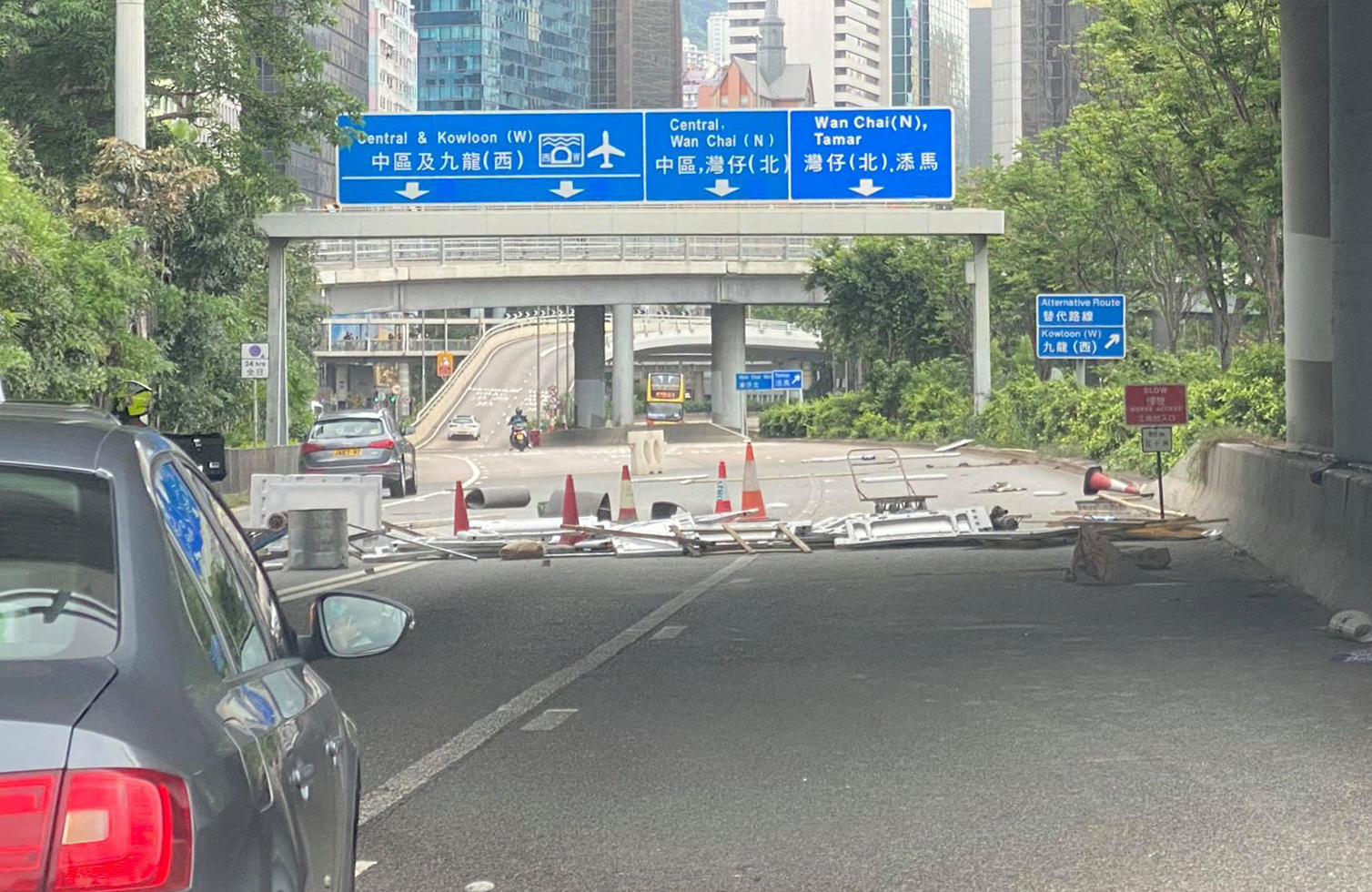 警方表示,今日(5月24日)下午約2時,有「暴徒」在灣仔軒尼詩道一帶以硬物擊打交通燈,有交通燈零件飛脫。「暴徒」又在灣仔一帶以垃圾桶等雜物堵塞多條馬路,原本用作道路工程用途的雪糕筒、水馬及圍欄散布地面。
