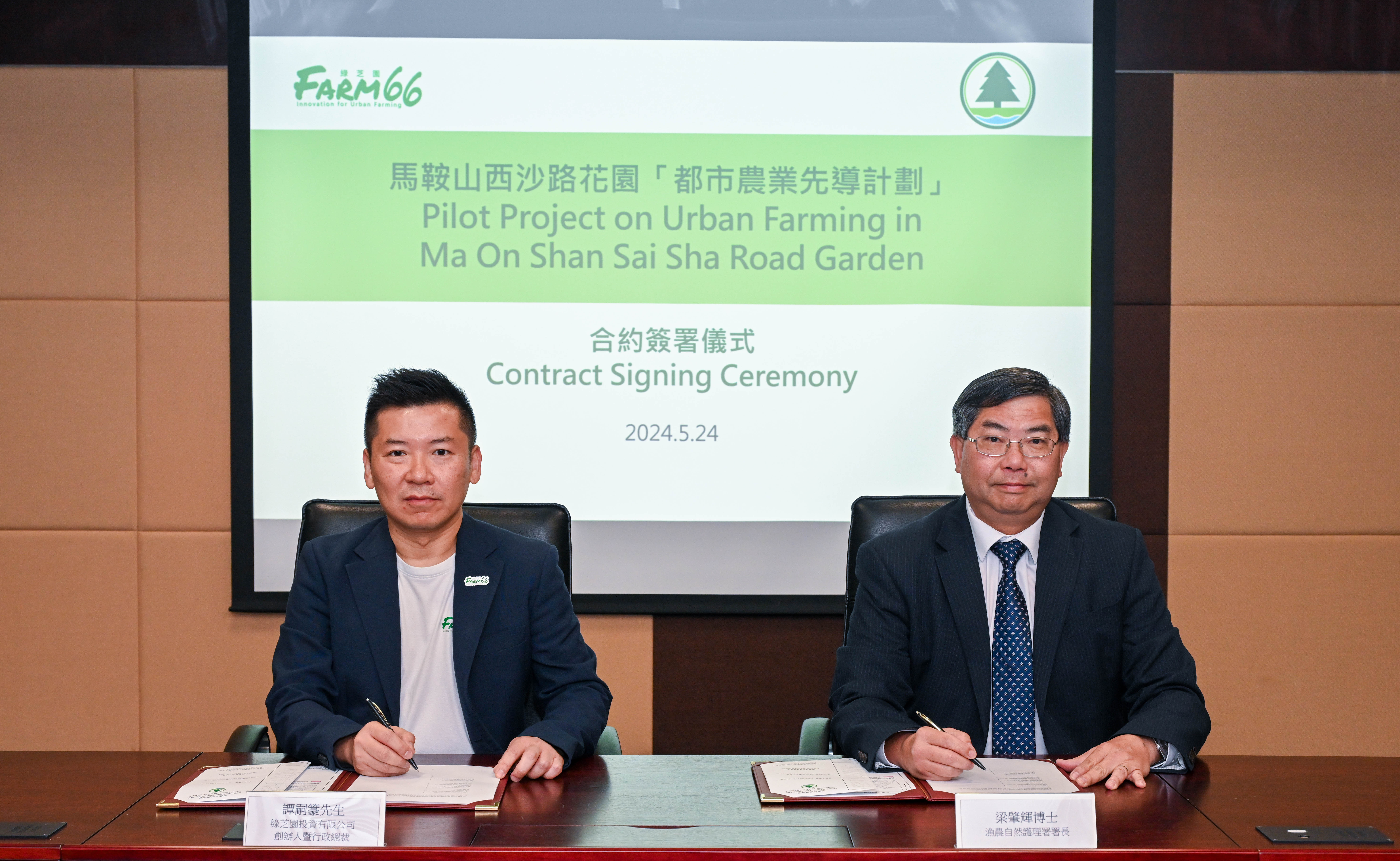 漁護署今日(5月24日)與綠芝園投資有限公司簽訂馬鞍山西沙路花園「都市農業先導計劃」合約。