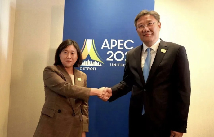 商務部部長王文濤周五(5月26日)在美國底特律,參加亞太經合組織貿易部長會議期間,會見了美國貿易代表戴琪。