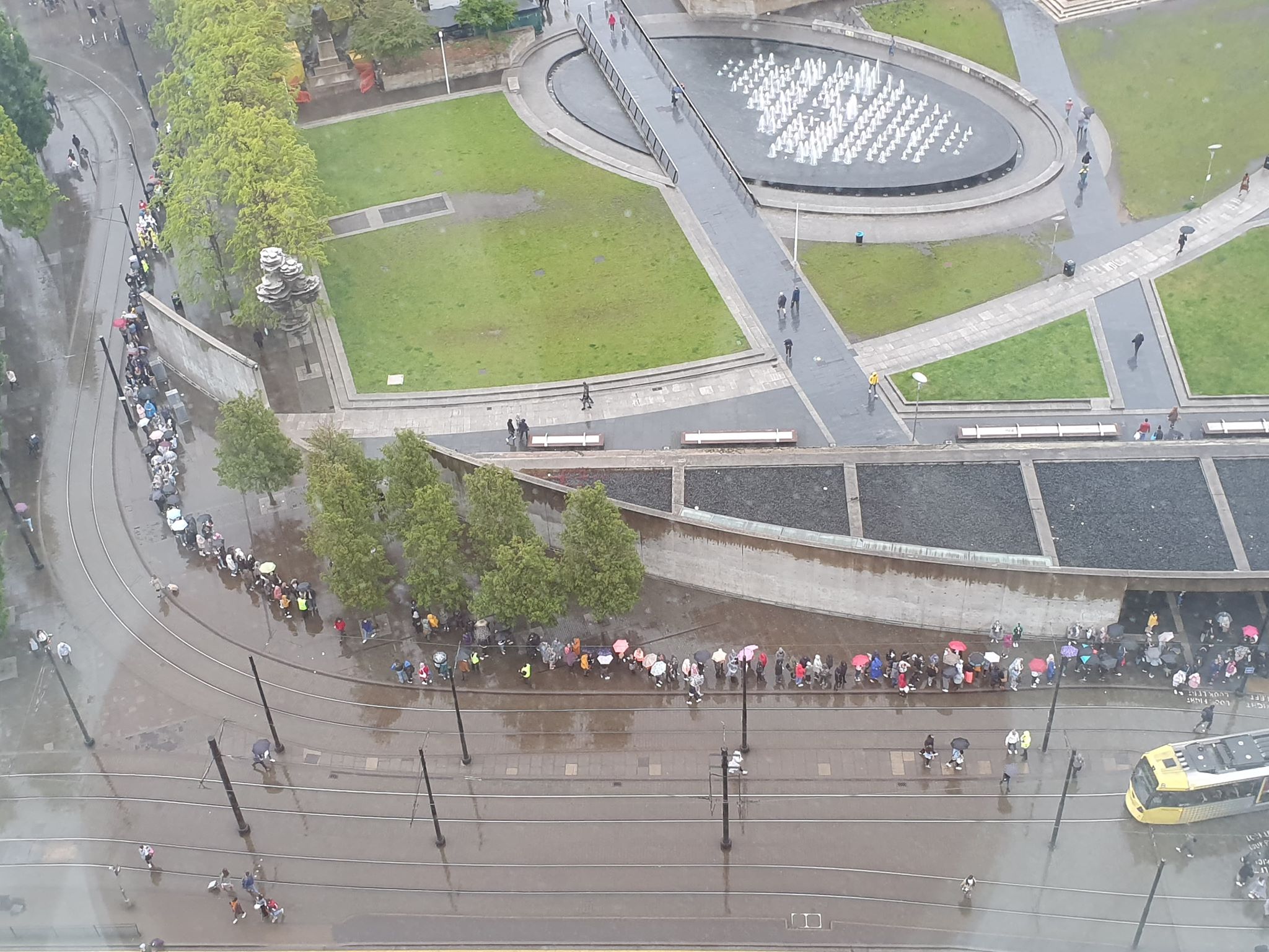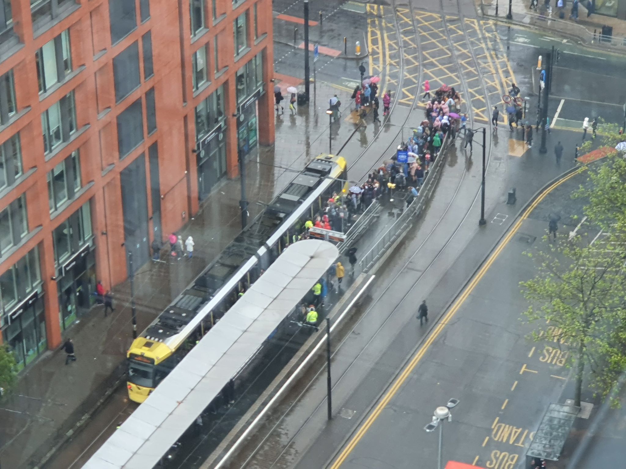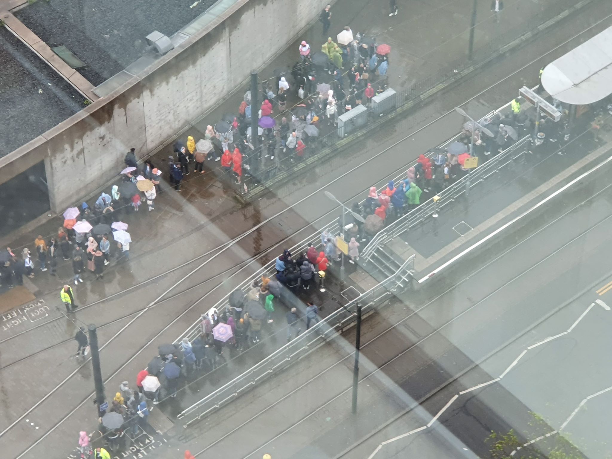 由於演唱會於傍晚舉行,正值放工時間,曼市內多個車站出現人龍(圖為市中心Manchester City Tower一帶),足見多年來fans熱情不減。