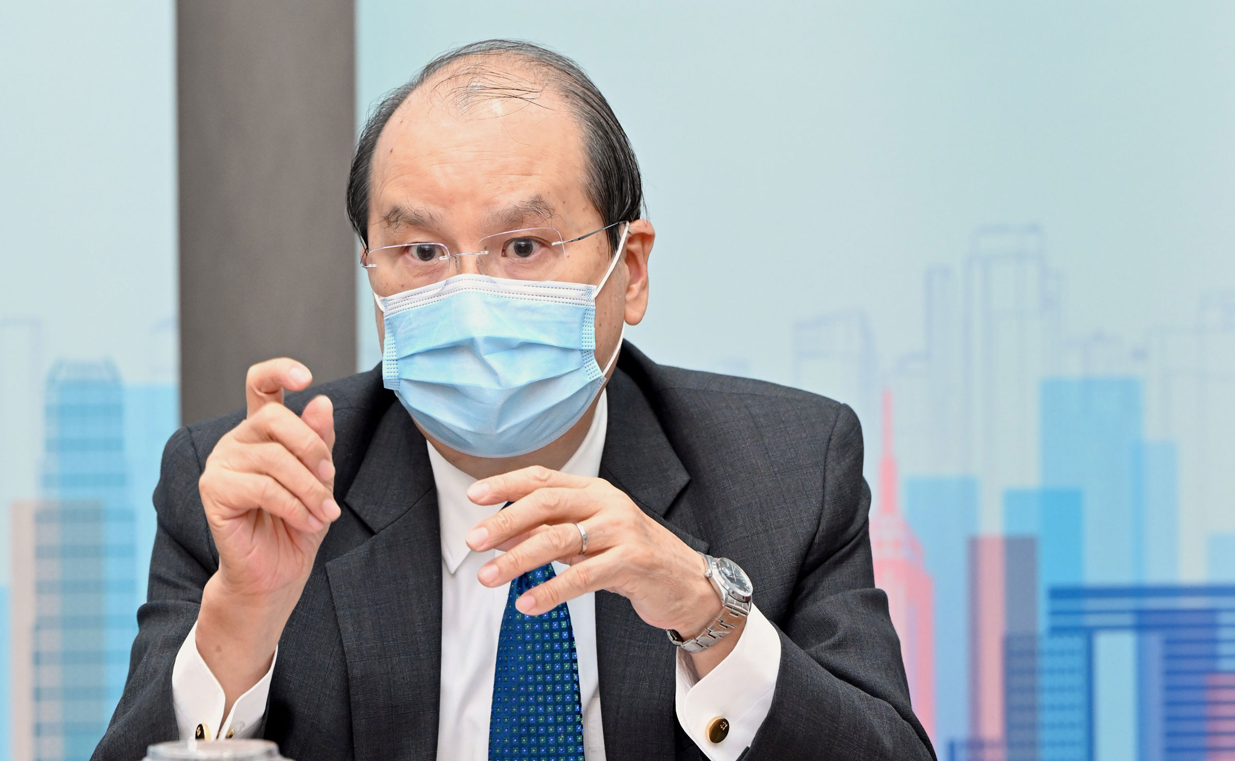 防疫方面,他指特區政府在堅守「外防輸入,內防擴散」策略的同時,正不遺餘力,提高市民的積極性,鼓勵市民接種疫苗,以便在社區建立有效的群體免疫力,守護香港。對於近日有地產發展商自發捐出住宅單位,通過抽獎送予已接種疫苗的市民,他認為此舉值得肯定。他歡迎商界主動提供誘因,鼓勵市民接種疫苗,彰顯其企業社會責任。