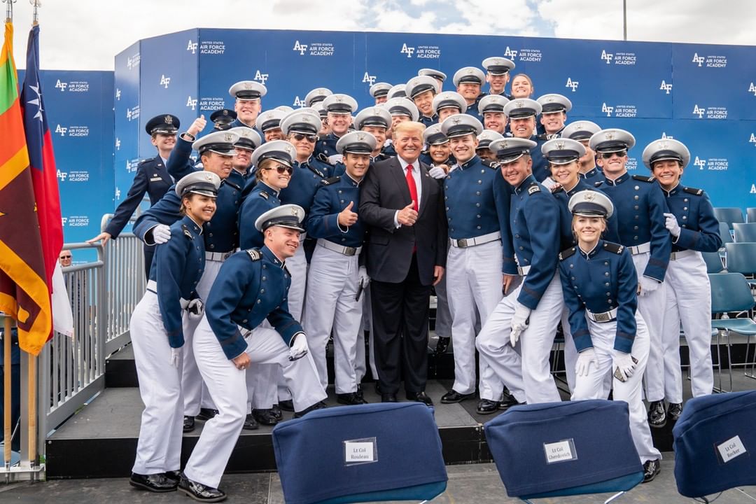 白宮之後於Instagram發文,指總統特朗普在空軍官校畢業典禮演講,並附上與官校畢業生合照。