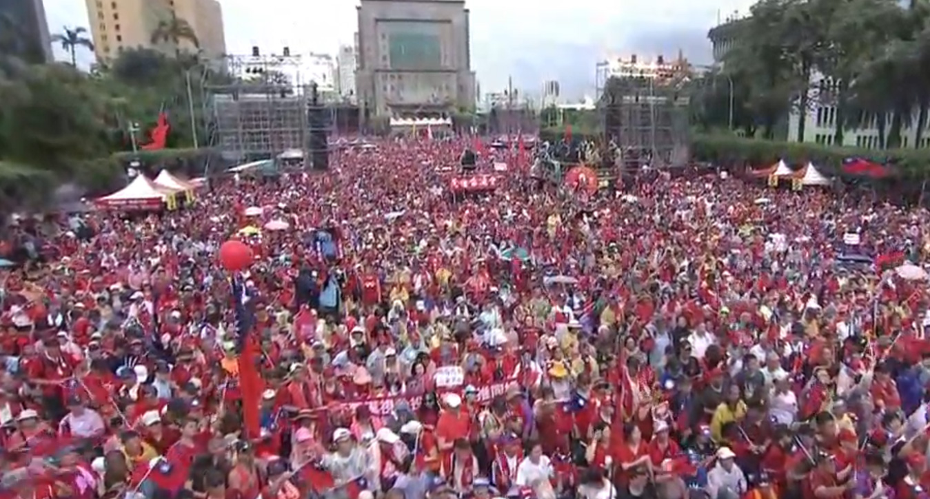 支持高雄市長韓國瑜選總統的「庶民韓粉後援會」,今日(6月1日)在台北凱達格蘭大道舉行首場造勢大會。縱使現場下著雨,但仍然有大批群眾響應呼籲,身穿紅衫及揮動青天白日滿地紅旗,到場支持韓國瑜。