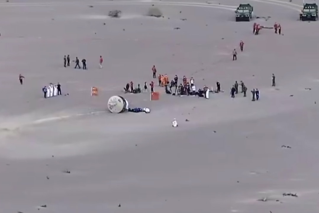 今早神舟十五號載人飛船返回艙在東風著陸場成功著陸,三位航天員費俊龍、鄧清明、張陸身體狀態良好。