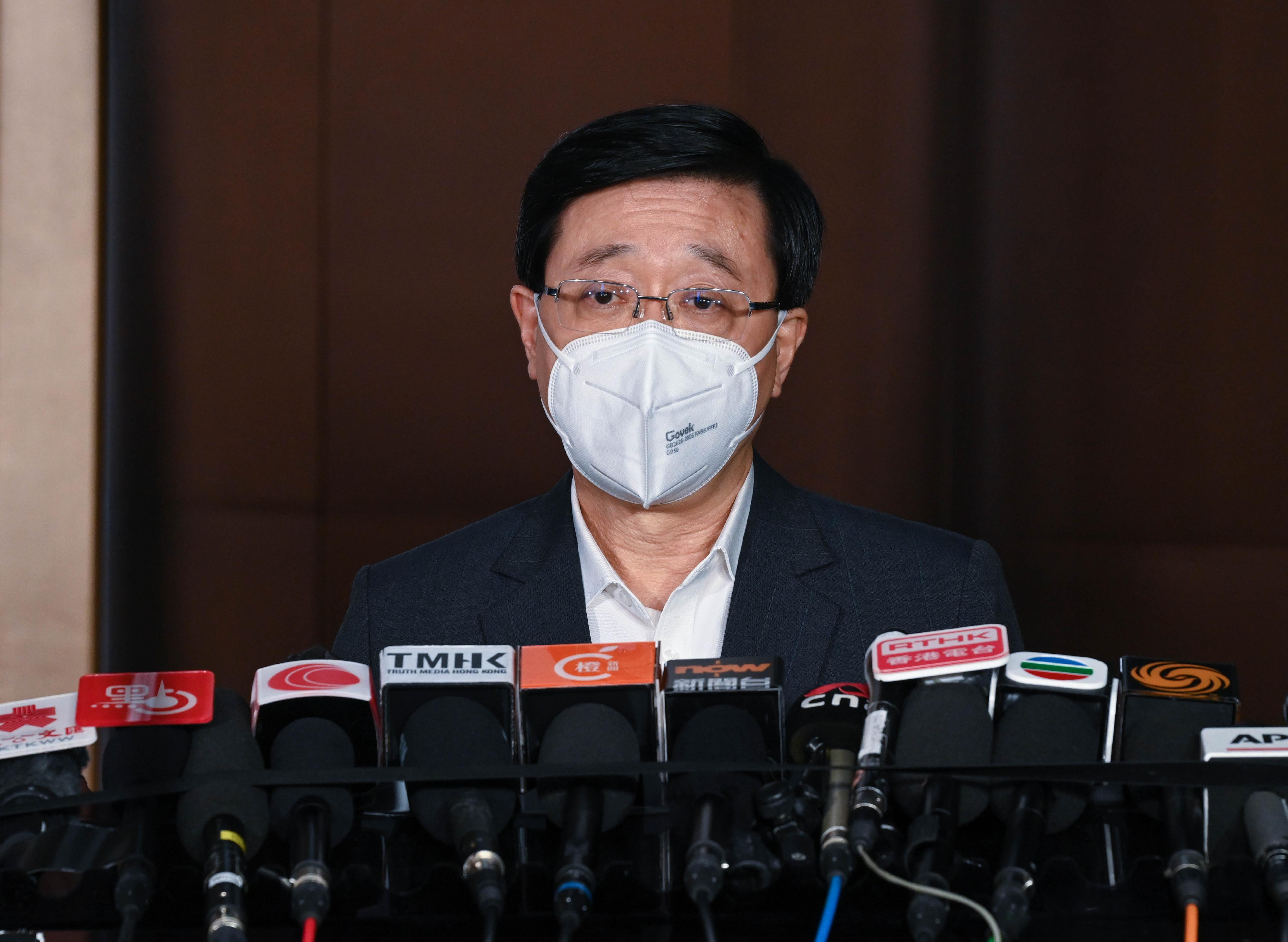 李家超強調,沒有國家安全,就沒有繁榮穩定;只有社會安定平穩,才可以推動經濟長足發展,確保「一國兩制」行穩致遠。