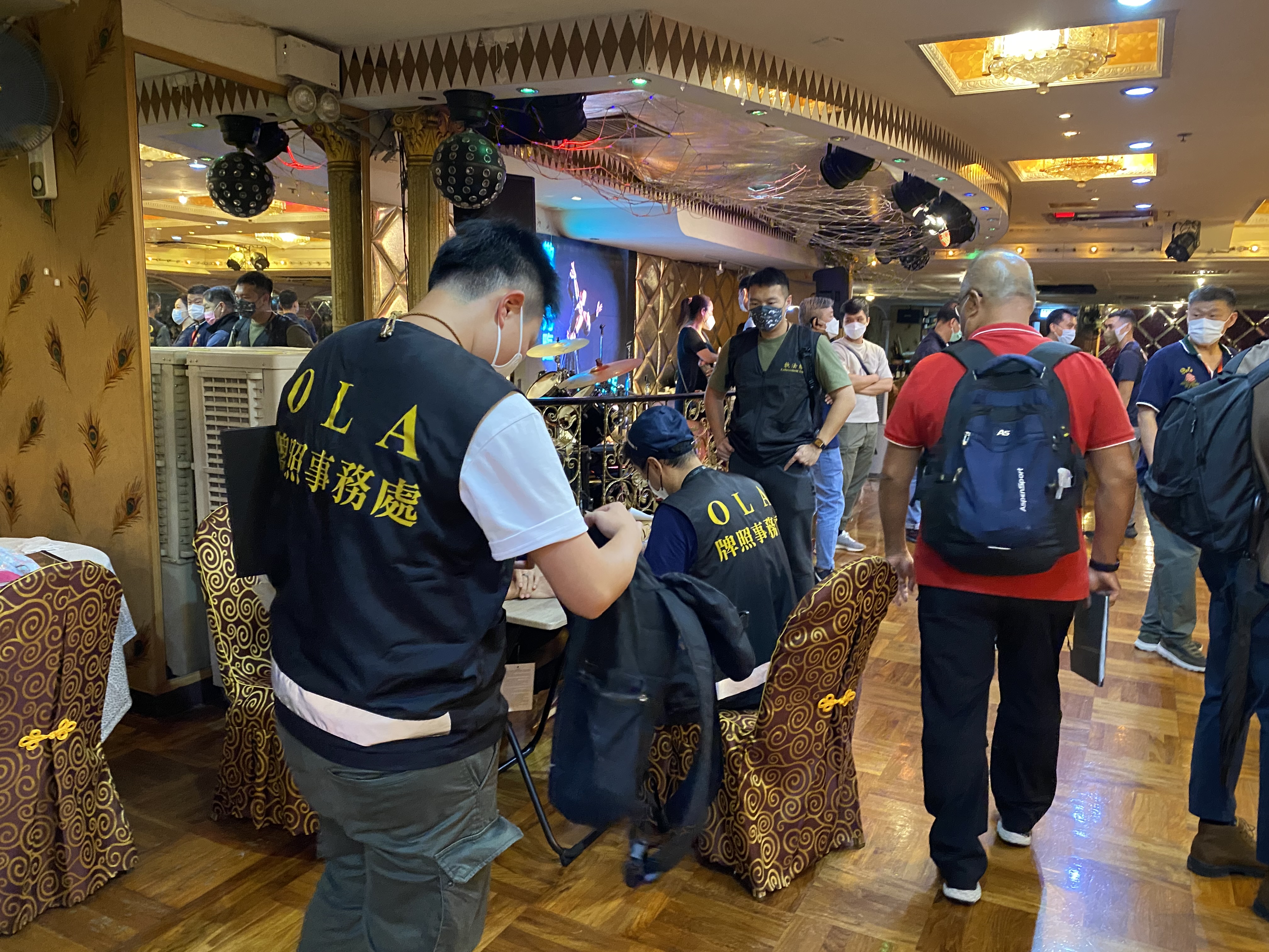 民政事務總署轄下牌照事務處今日(6月10日)到位於九龍旺角金雞廣場三樓一會址,就有人涉嫌違反防疫規例進行突擊執法行動。據悉,涉事會址為金儷星鳳凰于飛懷舊歌舞廳。