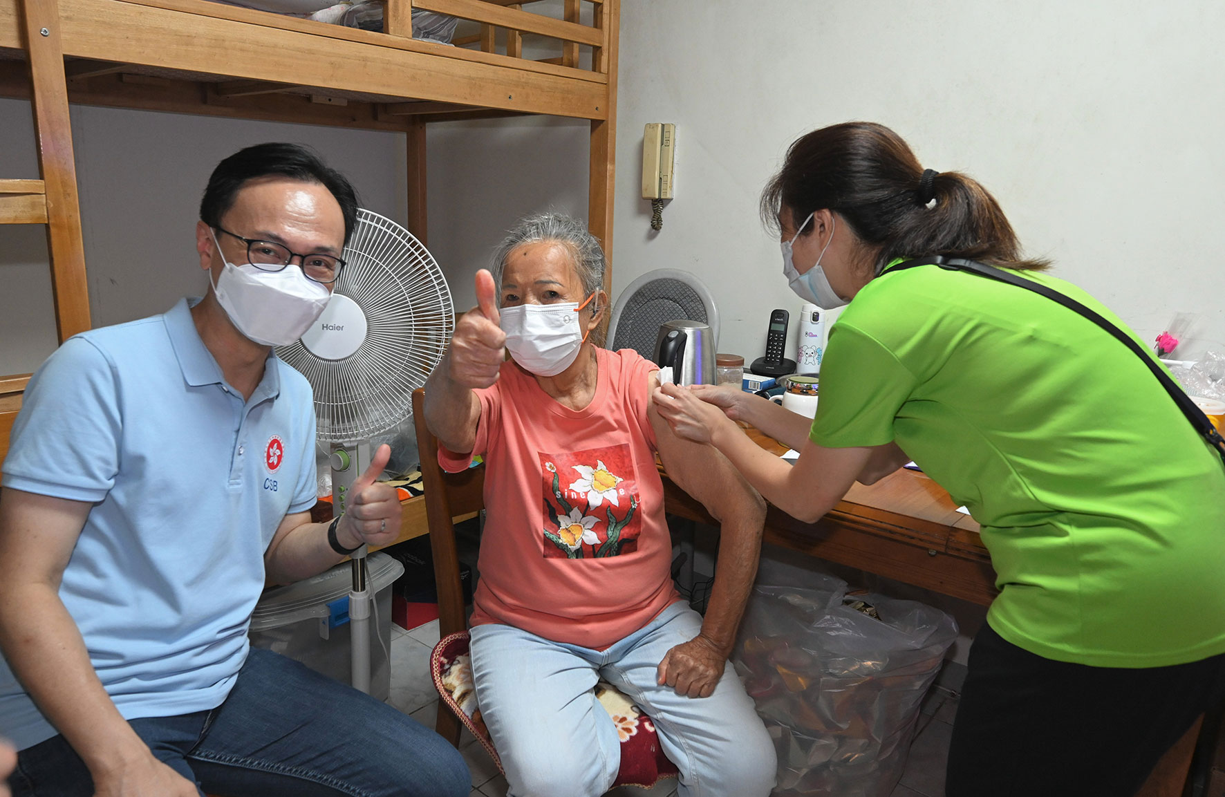 此外,公務員事務局義工隊和政務主任協會義工隊一行五十多人,今日(6月11日)兵分多路到離島不同地方,擔任「疫苗到戶接種服務」義工,伴隨8隊外展隊的醫護人員,協助為長者和有特別需要的市民接種疫苗。