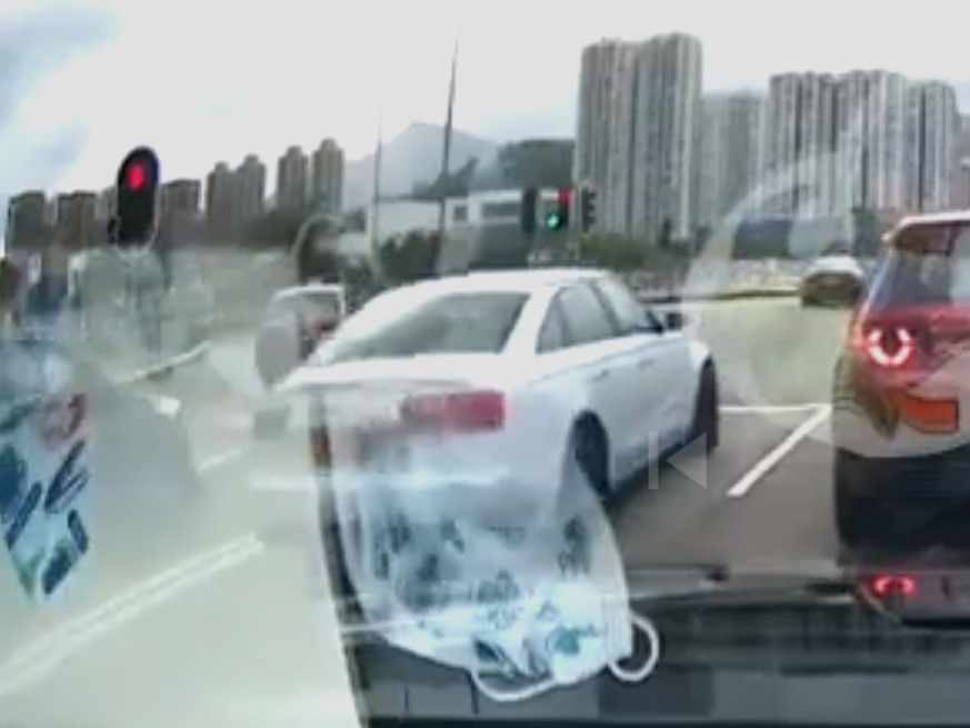 事發時在白色私家車前方,同樣涉嫌衝燈的黑色私家車,消息指30歲女司機已自行到警署,警方已向她發出擬檢控通知書。