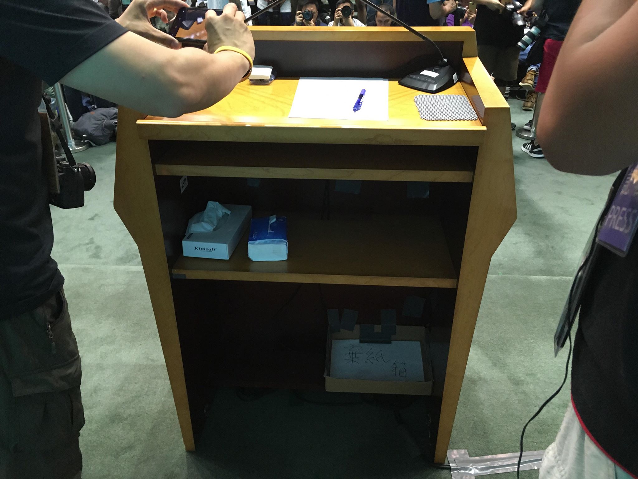記者會約歷時50分鐘,於講台內準備好的兩盒紙巾,最終未有用上。