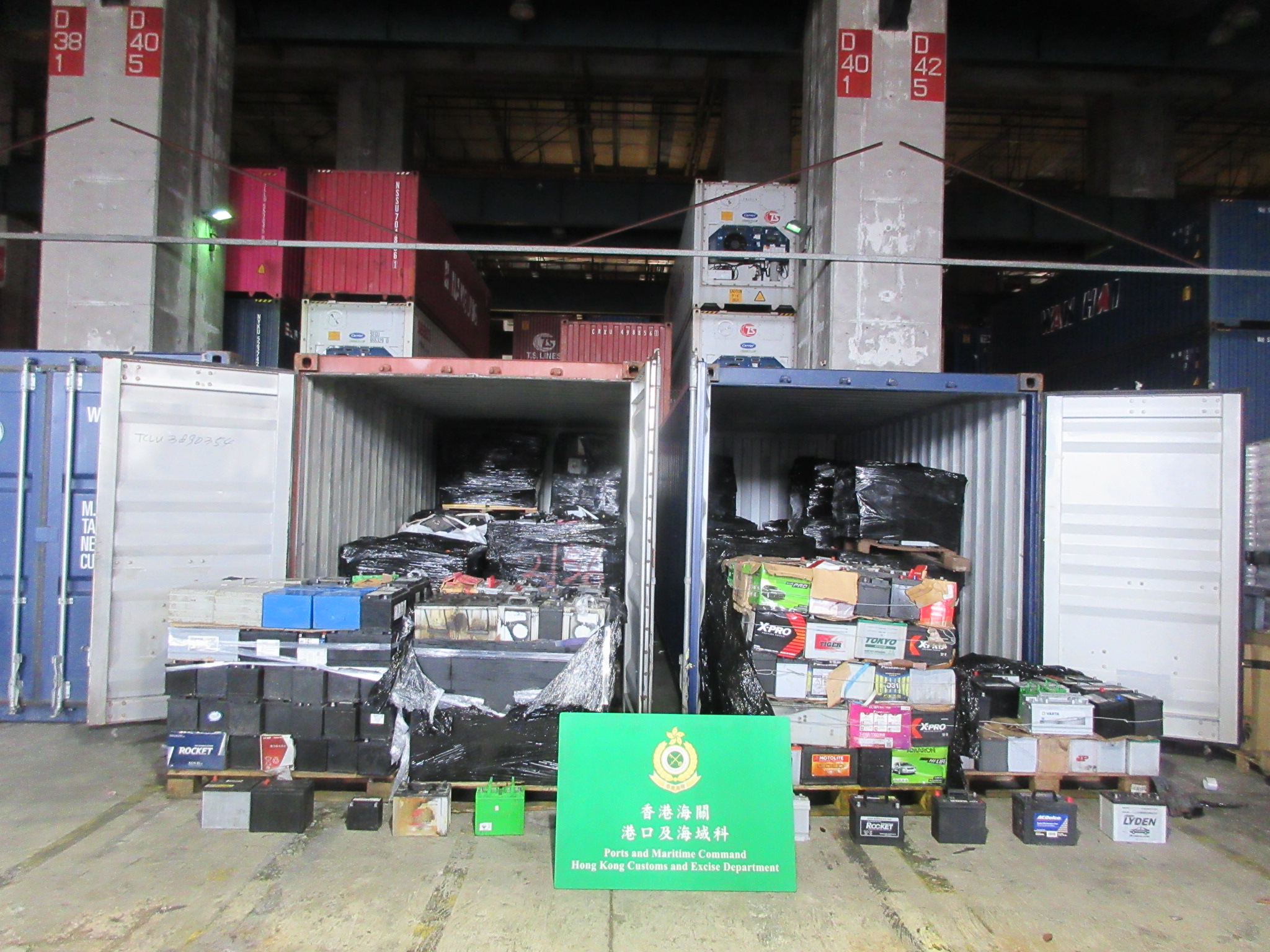 香港海關與環保署6月13日進行聯合執法行動,在葵涌貨櫃碼頭檢獲約50公噸懷疑非法出口廢鉛酸電池,估計市值約50萬元。