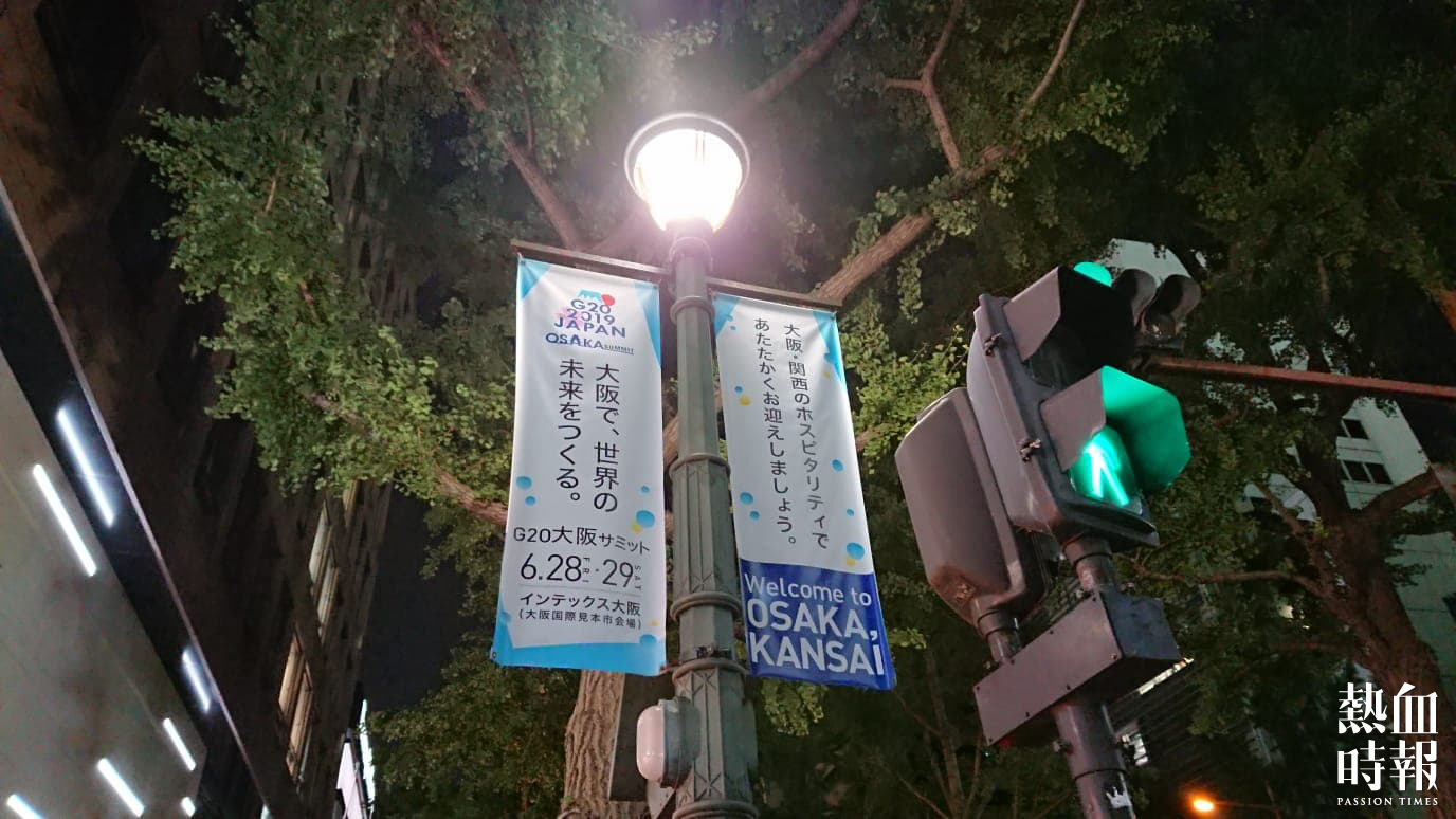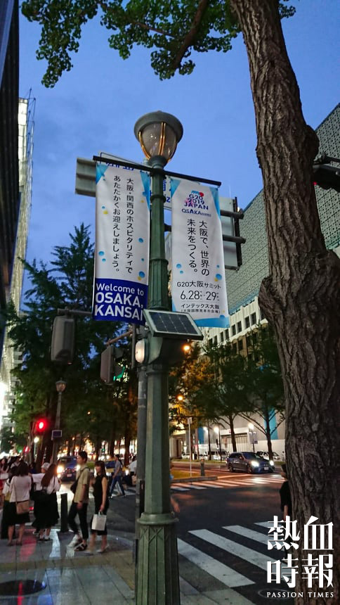 在大阪,街道上都見到有關G20峰會的宣傳,在燈柱掛起了相關的宣傳banner,寫上「大阪在世界上創造未來」及歡迎等字句。