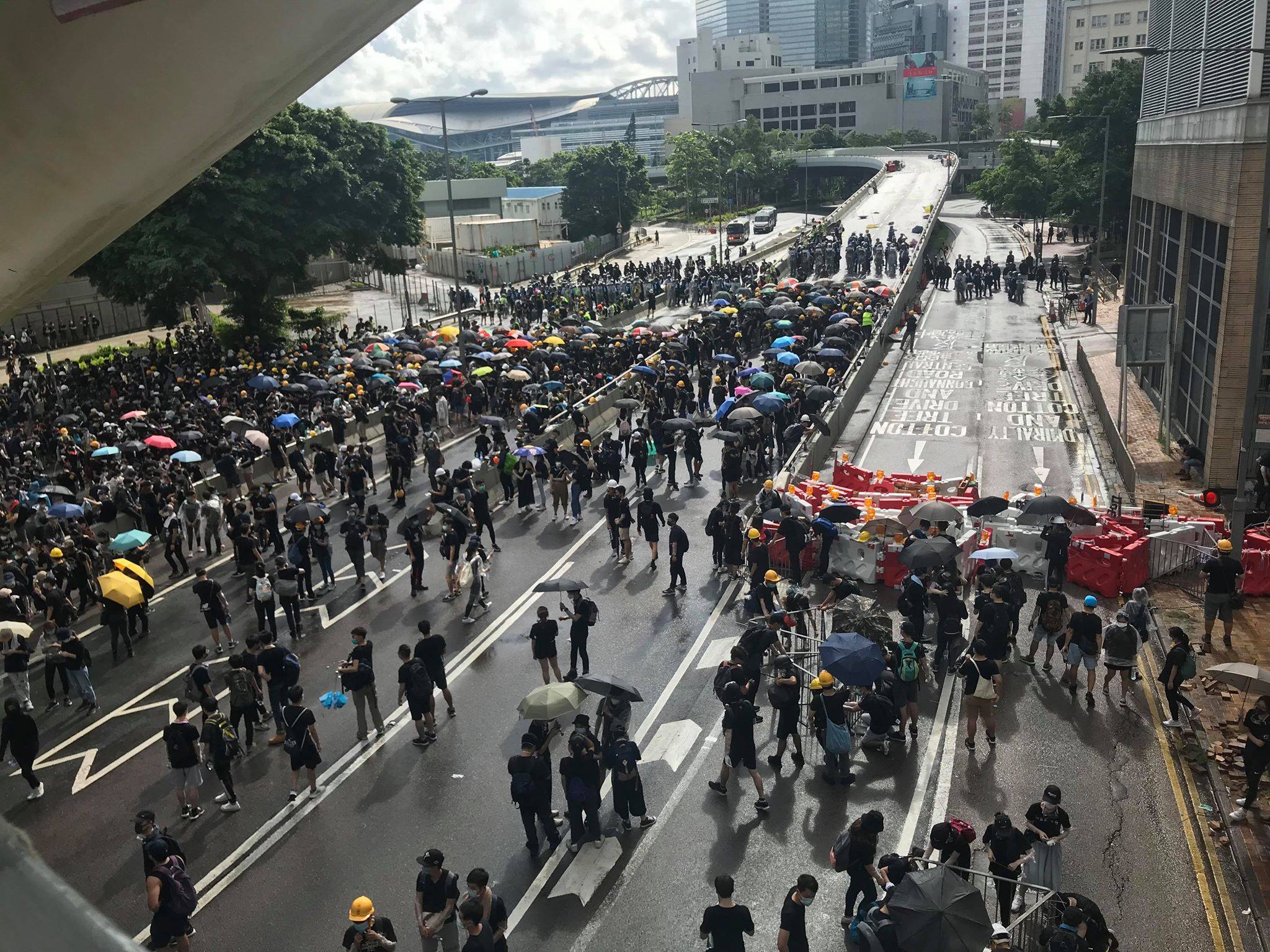去年7月1日,大批示威者於金鐘一帶示威,其中一名35歲建築工人被捕,被控一項參與非法集結罪。他今日(6月23日)在東區裁判法院承認控罪,被判監禁6星期。