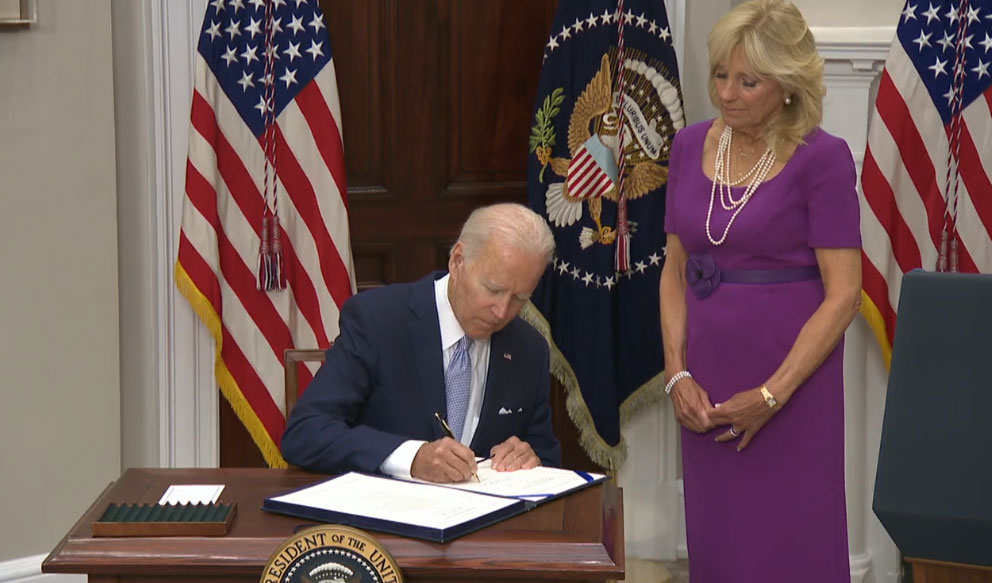 拜登在白宮的簽署儀式上,形容是有紀念意義的一天,雖然法案無完全達到他的期望,但也包括自己長期的呼籲,指生命將得到拯救。