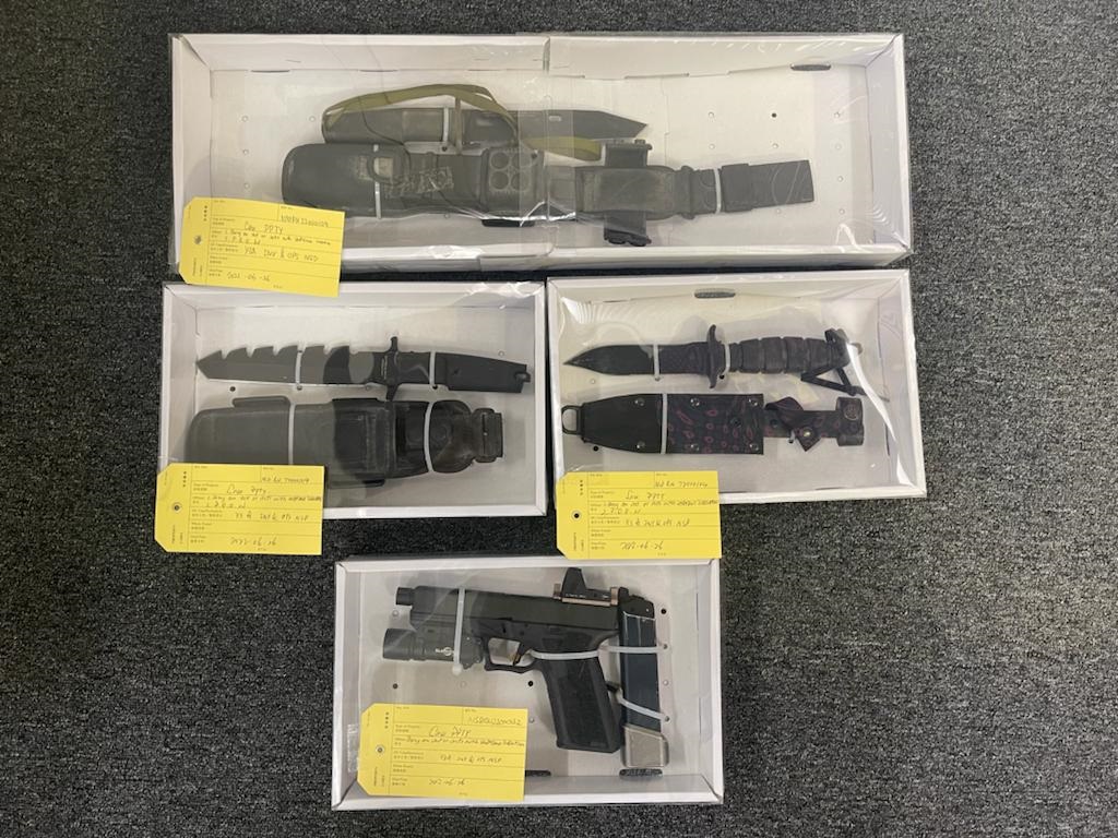 警方根據法庭手令,搜查兩名被捕人的住所,檢獲曾用作發佈煽動意圖訊息的電子通訊器材、電腦、軍刀及一枝仿製槍械。